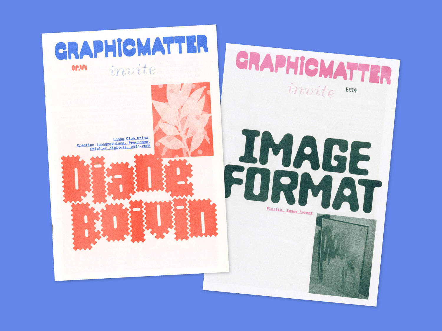 La collection Graphic Matter Podcast version papier s'agrandit avec deux numéros supplémentaires ! En route pour une exploration graphique avec Louise Gomez qui, pour ces nouveautés, tend le micro à Diane Boivin et Image Format !