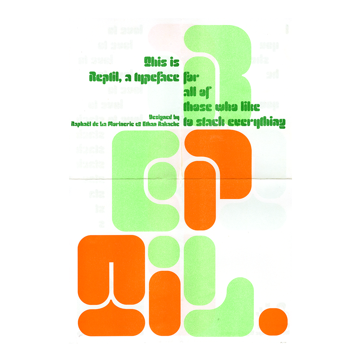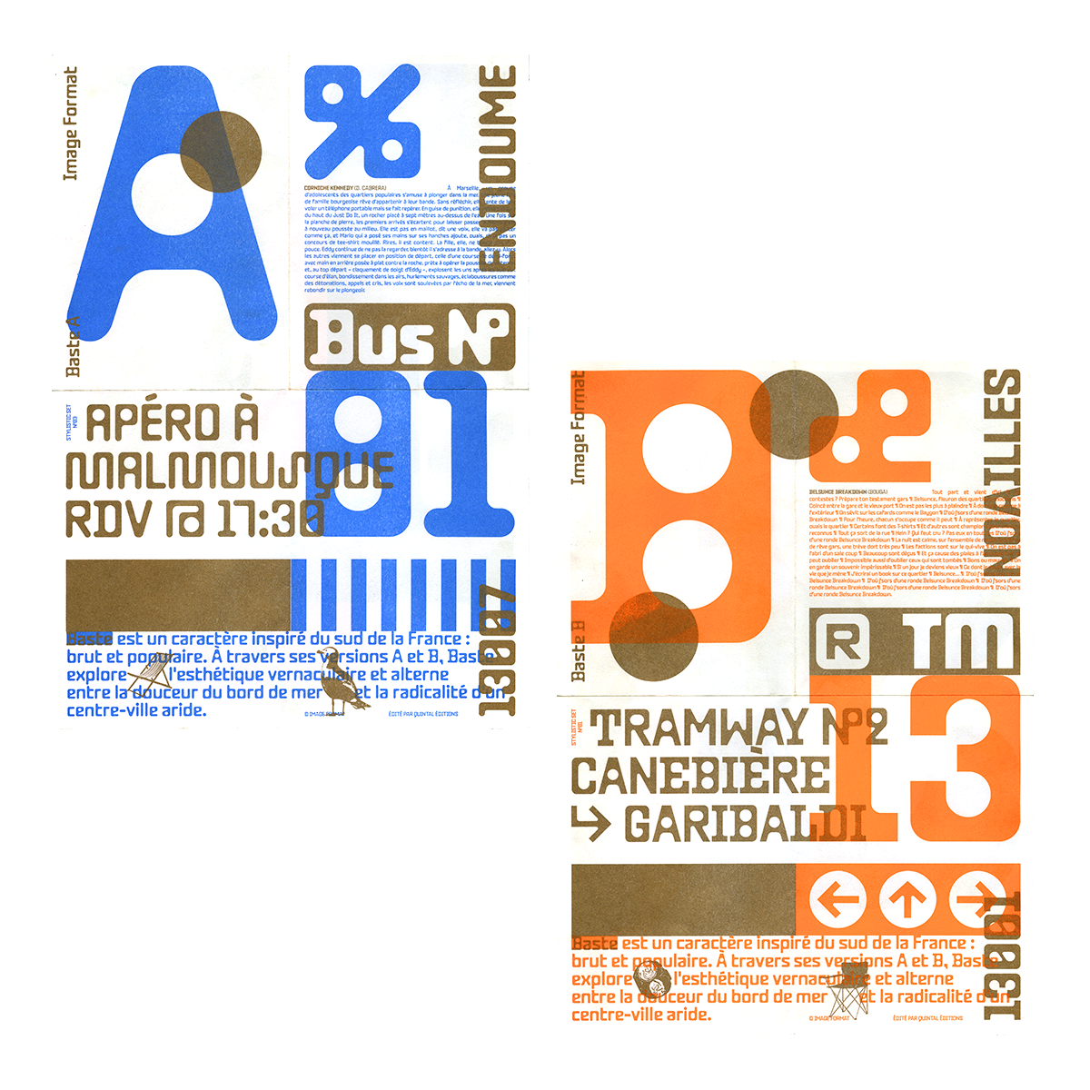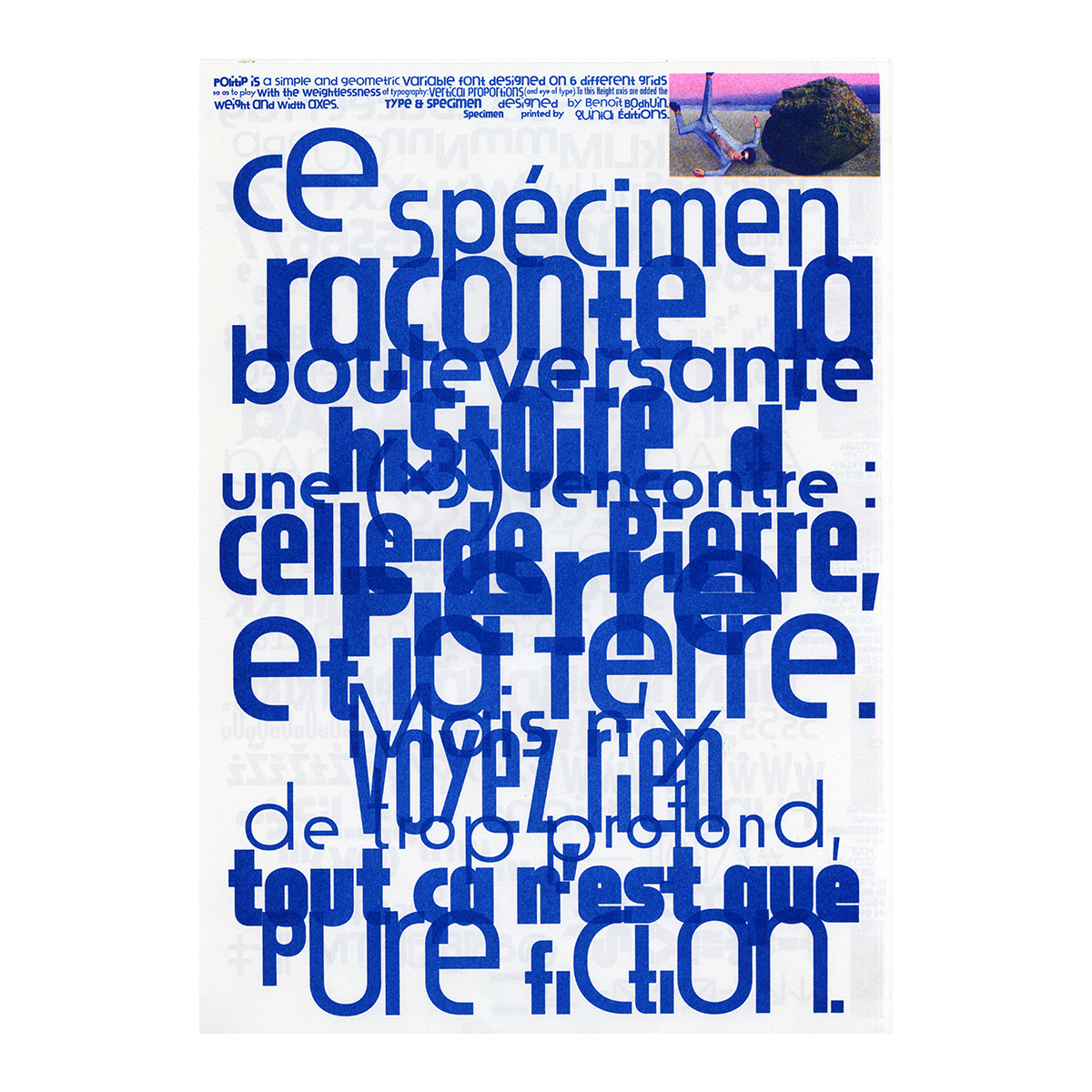 Nous éditons des spécimens avec des typographes et graphistes depuis 2018. Ces spécimens mettent en avant les créateur et créatrices de caractère typographiques contemporains-des. Le spécimen est un terrain de jeu formel et coloré.