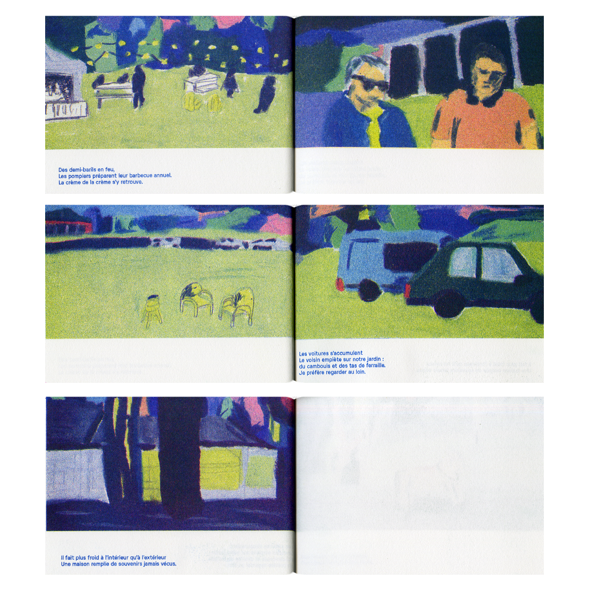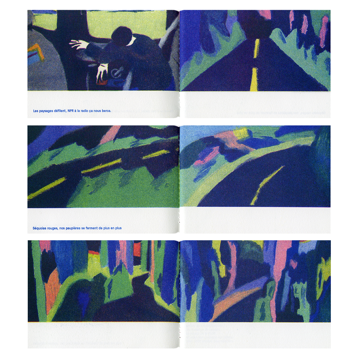 Un voyage dans les souvenirs, une exploration visuelle et narrative où paysages et pensées s’entrelacent au fil du trajet. Comme lorsqu’on est à l’arrière d’une voiture, une rêverie s’installe, bercée par le défilement du paysage à travers la fenêtre. Les idées surgissent au rythme de la route, réveillant des images familières, ces itinéraires gravés en nous que l’on pourrait retrouver les yeux fermés.