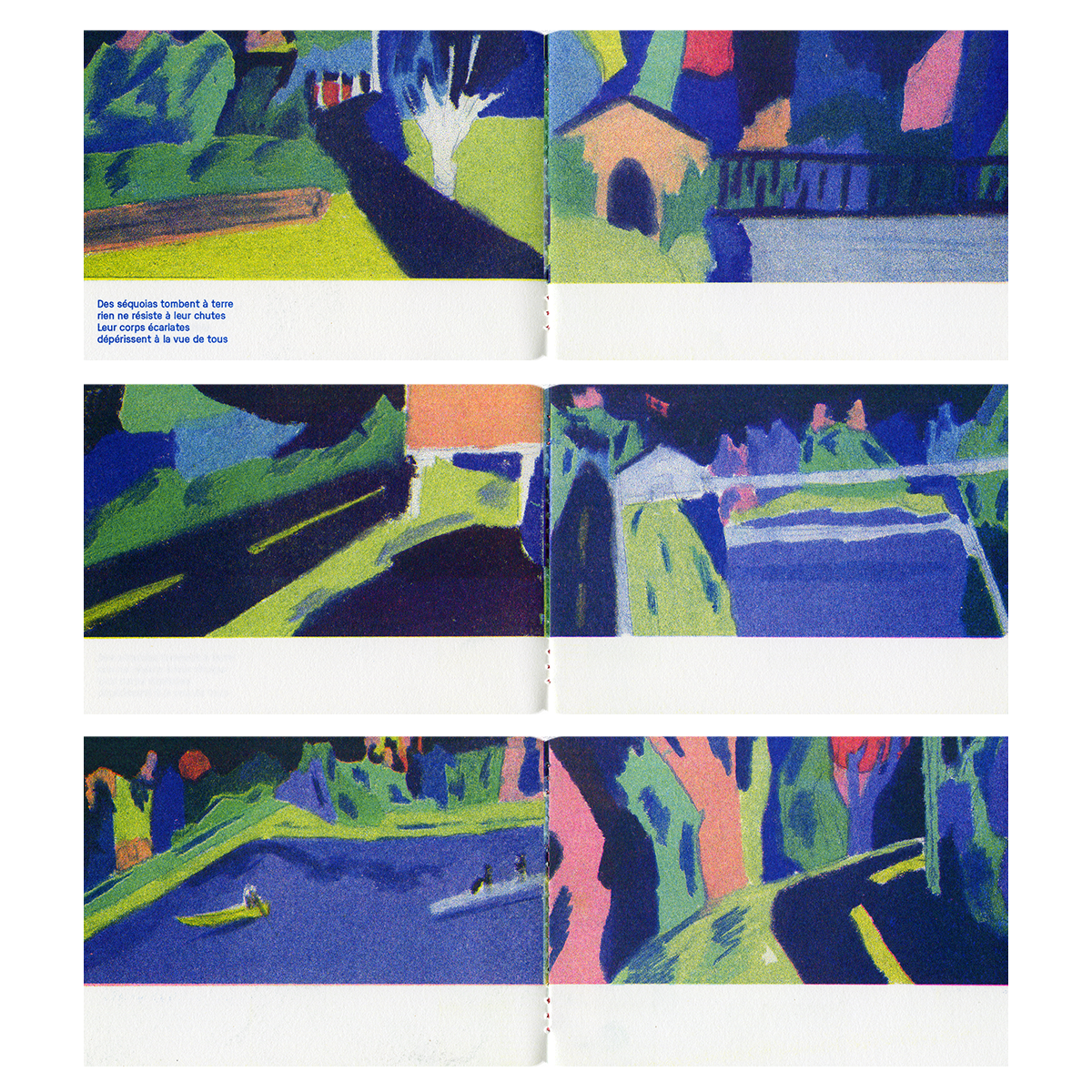 Peints avec ses pastels pigmentés, Evan retranscrit des souvenirs, qu’ils soient vécus ou racontés. Il parcourt une région reculée de la Californie, terre d’origine de sa famille, où se mêlent vestiges américains et séquoias rouges. À travers ses pastels, il capte et réinterprète les couleurs, oscillant entre abstraction et figuration, pour donner une nouvelle dimension à ces paysages empreints de mémoire.