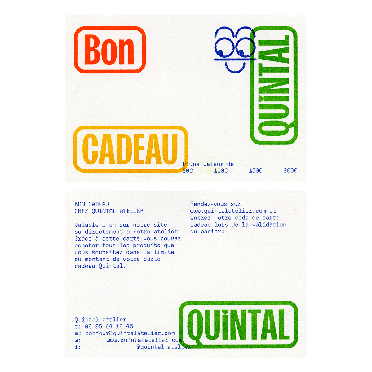 Quintal vous propose plusieurs bons cadeaux à offrir à vos proches : un atelier d’initiation à la risographie, un bon d’achat ou un bon d’impression Riso.