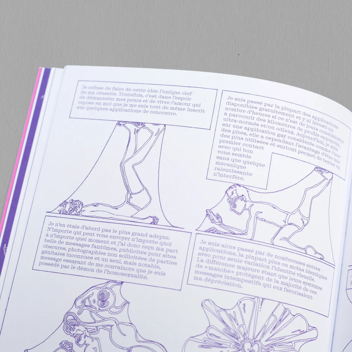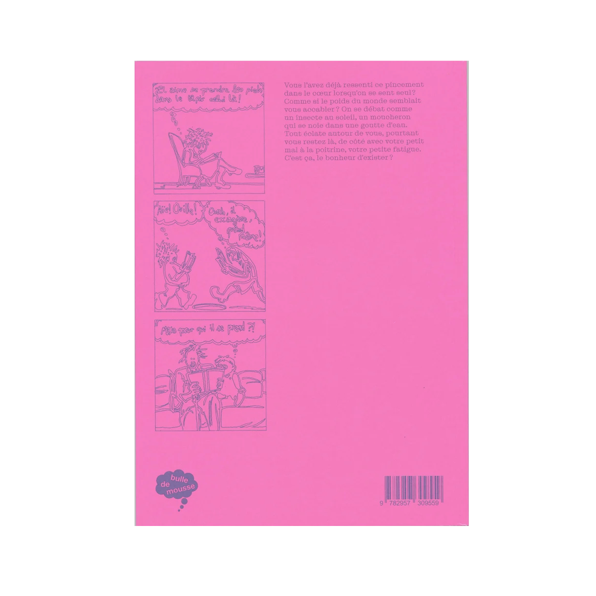 "Bonheur d’exister" est une bande-dessinée présentant cinq histoires d’auto-fiction. Au travers de ces récits balançants entre écriture de journal intime et prose littéraire, Sébastien explore les questions de dépression contemporaine, des pressions mélangées des réseaux sociaux, d’incohérence de l’amour filiale, et plus largement des questions autour de sa psychanalyse.