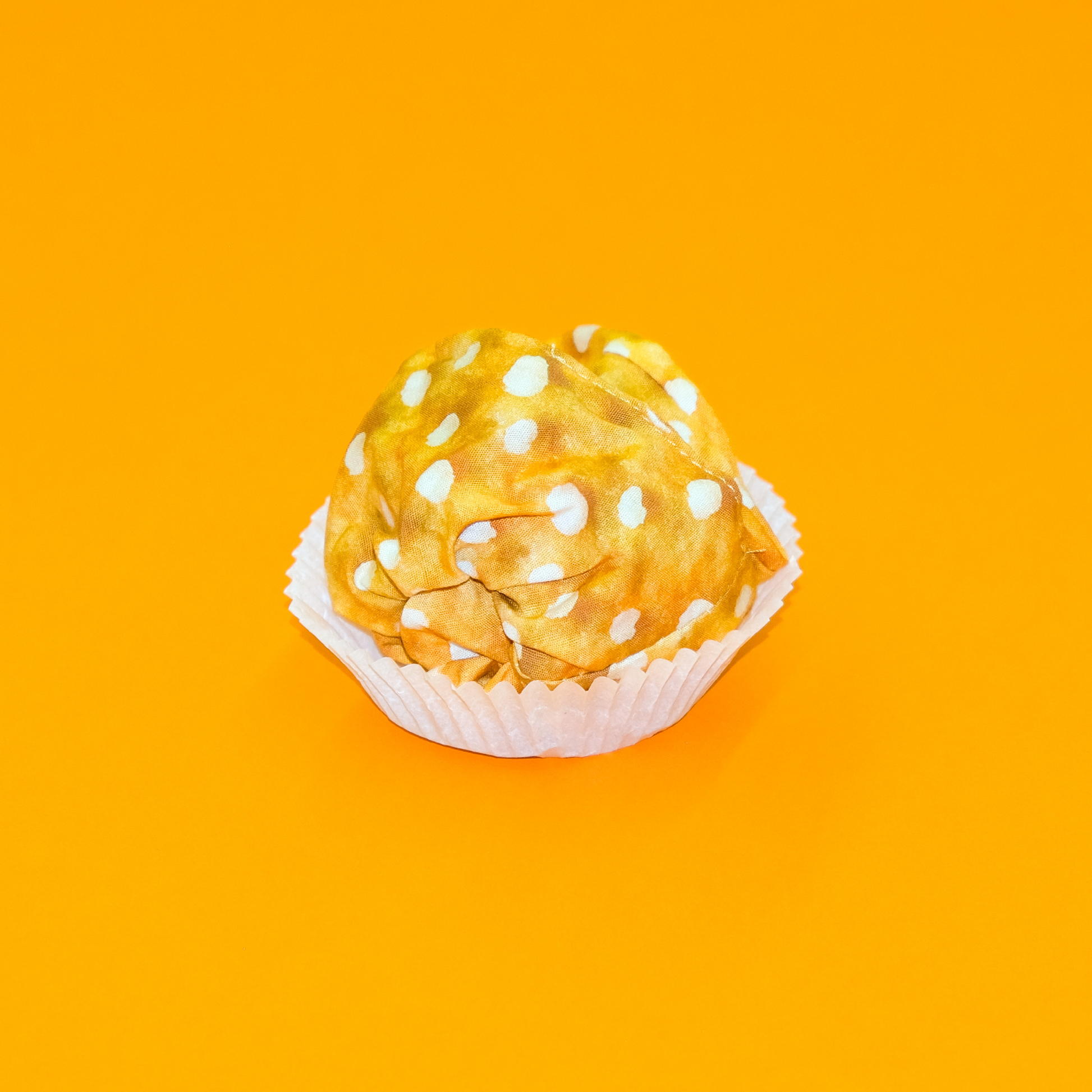 Chouchou au motif chouquette imaginé et conçu avec amour à l'occasion de l'exposition Freshly Baked à Quintal Librairie Galerie