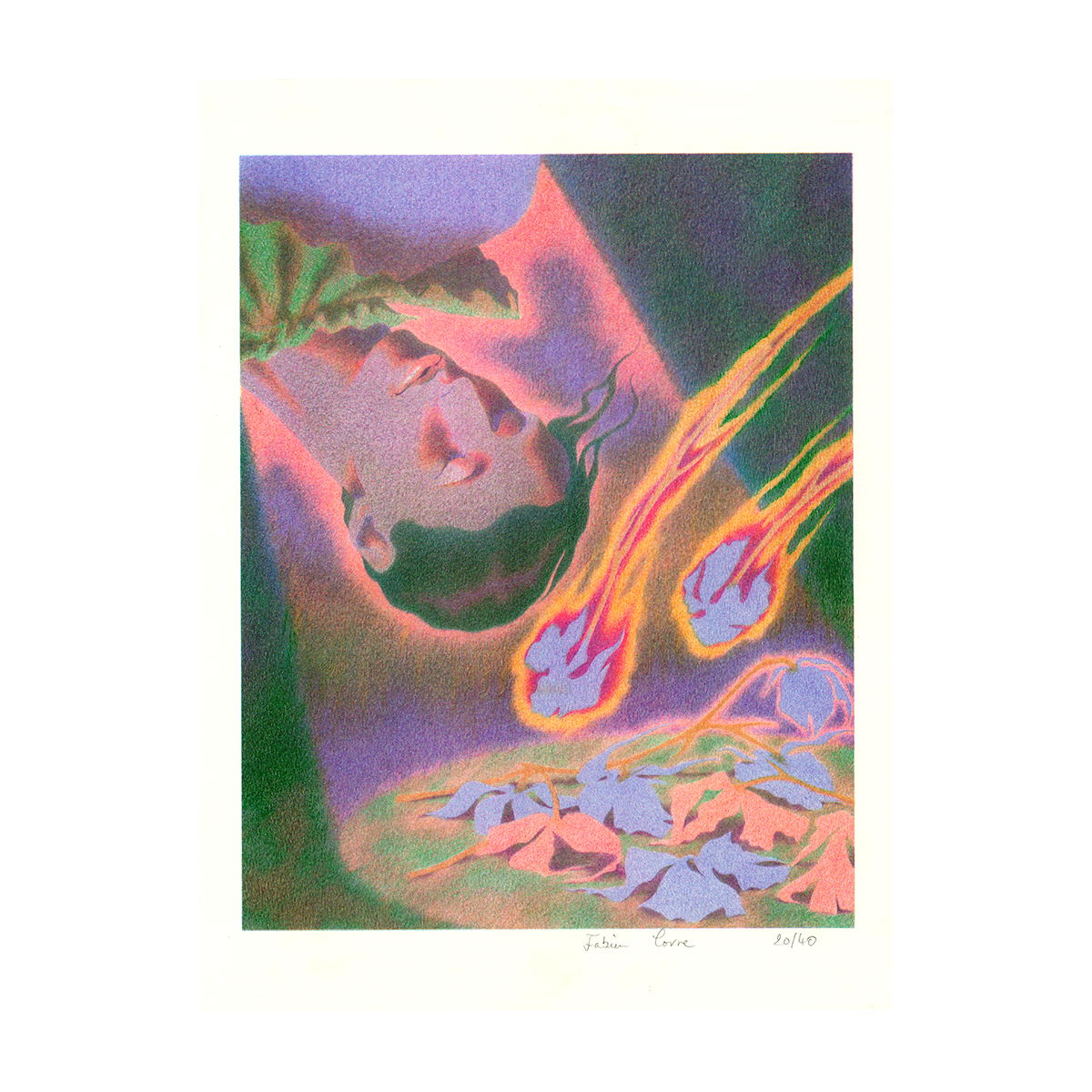 Dessin au crayon de couleur de l'artiste Fabien Corre imprimé en Risographie en hommage à Jean Genet. Série limitée de 40 exemplaires numérotés.
