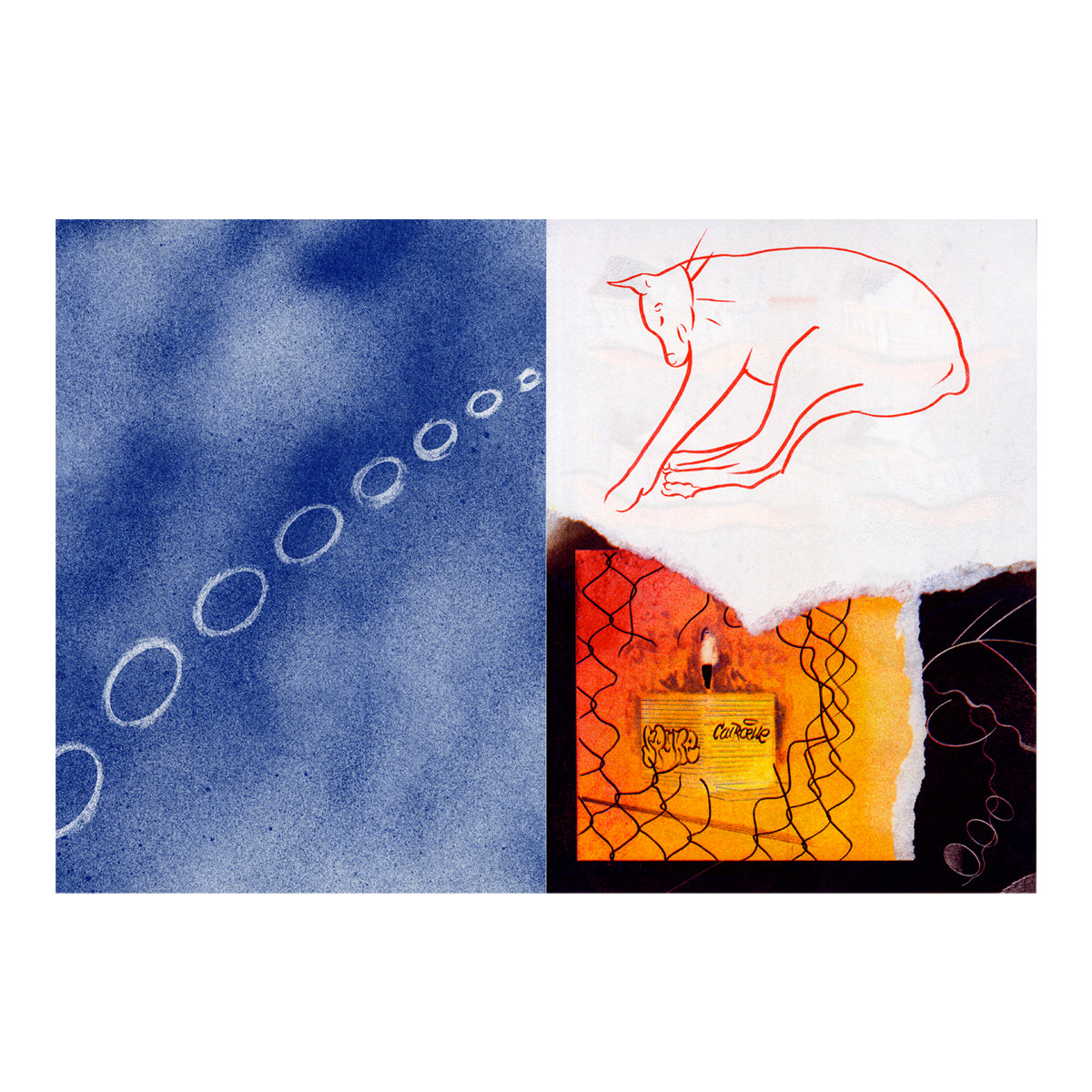 Les deux parcours se répondent et se complètent au fil des pages. Certaines images reviennent plusieurs fois à quelques variantes près, il y a des motifs récurrents, tout se réécrit petit à petit sur fond de métamorphose(s).