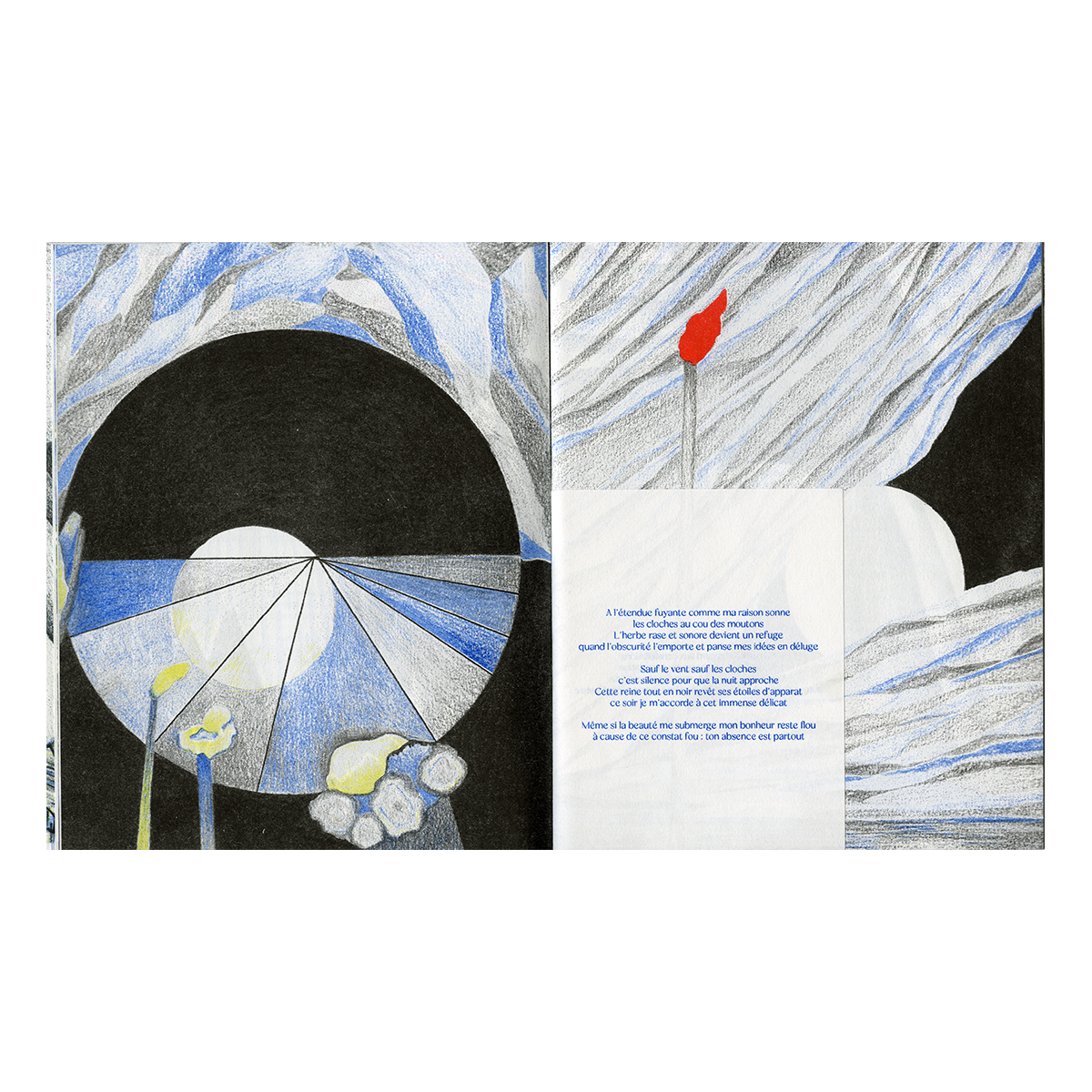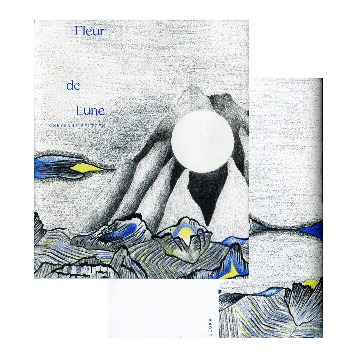 "This book is the graphic and poetic story of a dreamlike Odyssey. Cheyenne Feltgen texts and drawings respond to each other to illustrate suspended moments, instants of oscillation and wandering on top and inside nature, in all her softness and uproar. This is the story of a pathway, of a sweet but staggering loneliness, in which the artist uses drawing and writing to honor the perceived presences, as an exile diary into the world of dreams and chimeric atmospheres. Fleur de lune is an invitation to dizziness, to tilt in a world where poetic feeling rules, a praise of the tamed time and the lit hazes."