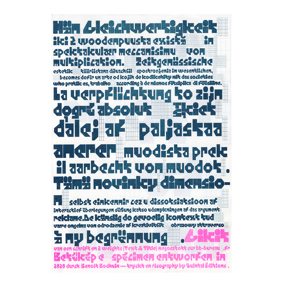 Spécimen Typographique de Benoît Bodhuin, mise en page de son caractère 'Gikit' créé en 2019.