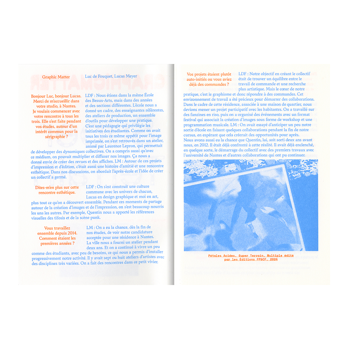 Graphic Matter is a podcast dedicated to the French contemporary graphic design scene. From the start, Graphic Matter wanted to offer a print format: an editorial object to leaf through, to give as a gift and to collect in one's library;