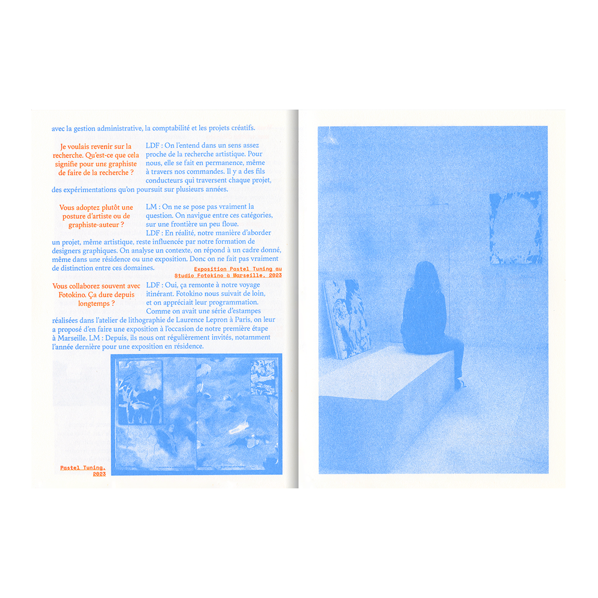 Produced in collaboration with Quintal Atelier, each 16-page, two-color, risography-printed fanzine transcribes an episode of Graphic Matter, supported by images of the guest artist's work.