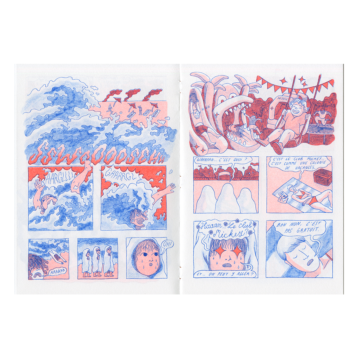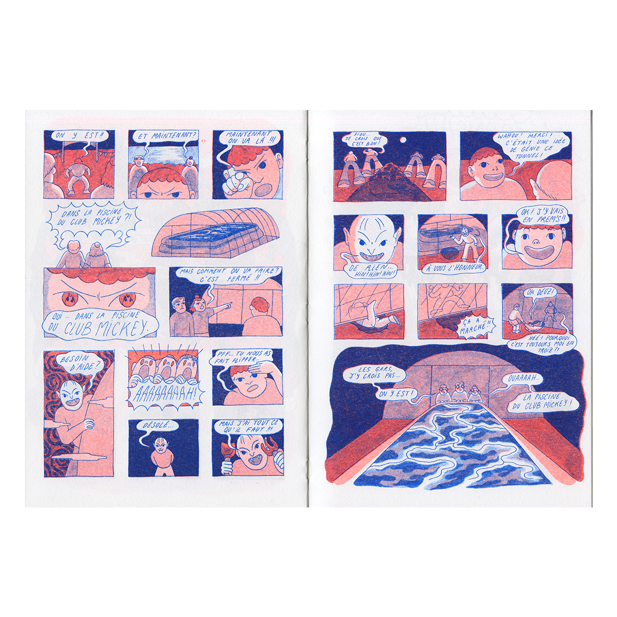 "Le club Mickey est un adorable petit zine qui raconte la trépidante enfance de l'autrice, où se mêlent rivages de Vendée, toboggans gonflables en forme de crocodile et lutte des classes !"