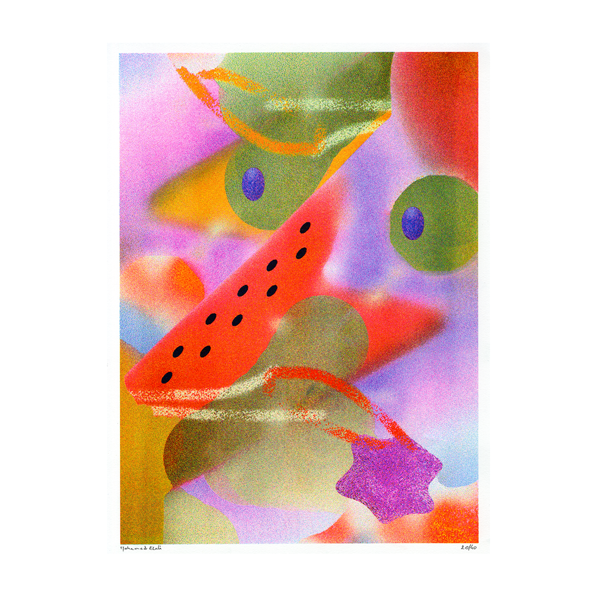 Collage numérique de l'artiste Mohamed Elali imprimé en risographie. Série limitée de 40 exemplaires numérotés et signés par l'artiste.