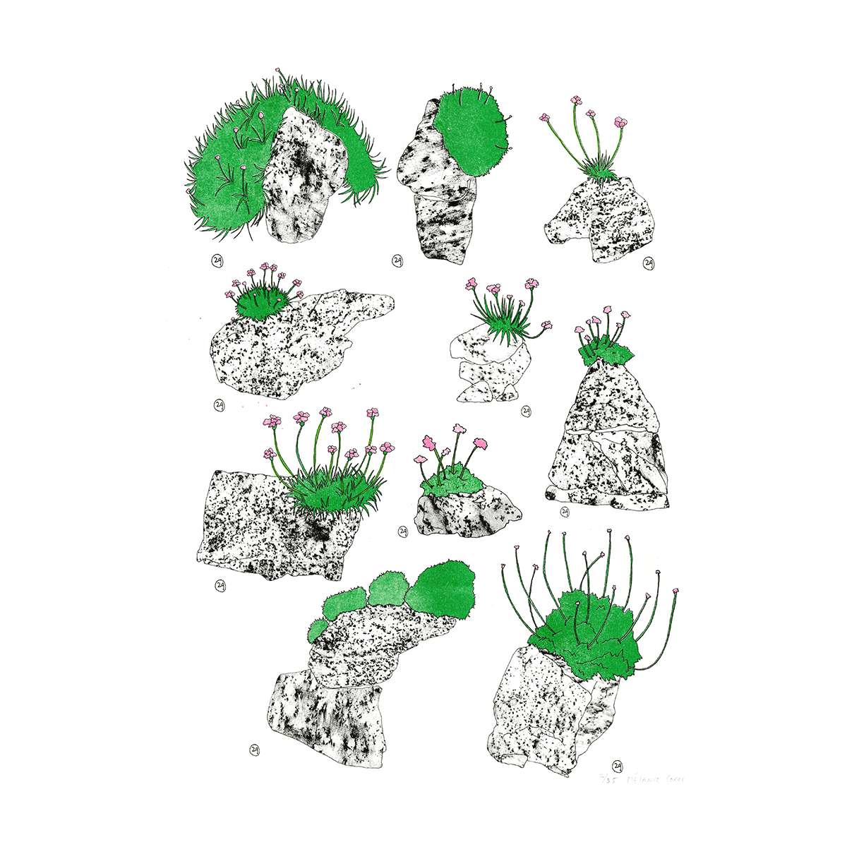 Dessin de l'artiste Franco Néerlandaise Mélanie Corre imprimé en Risographie. Série limitée de 35 exemplaires numérotés. Issu de l'édition 'Pierre et Fleur' édité et imprimé par Quintal.