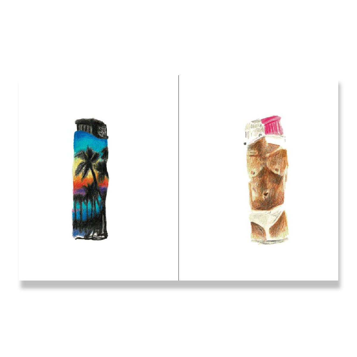 Dans Les briquets que je n'aurai jamais Vol. 2, Alice Nataf présente une sélection de dessins de briquets réalisés d'après photo. Lorsque l'artiste emprunte un briquet pour s'allumer une cigarette, elle le prends en photo puis le dessine.