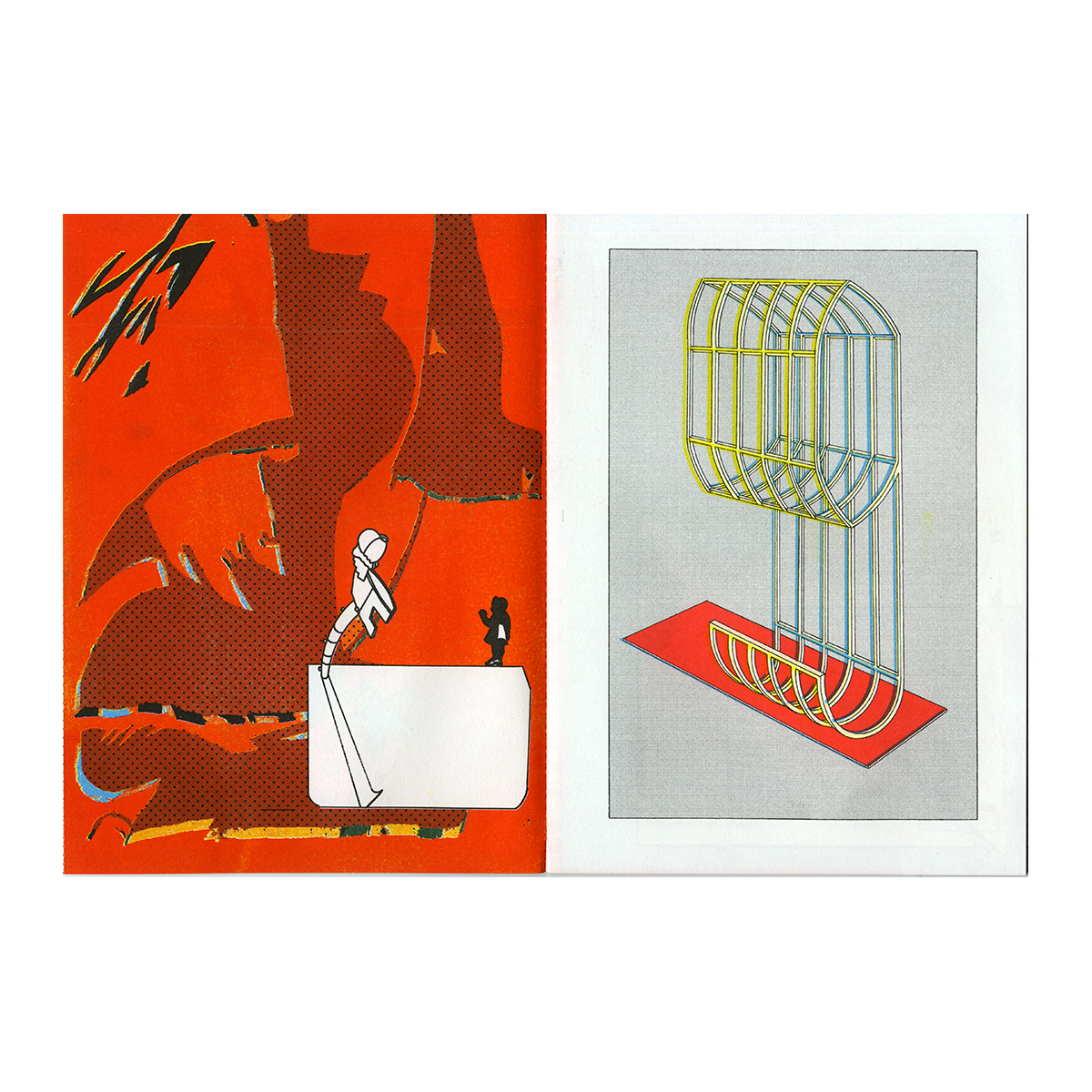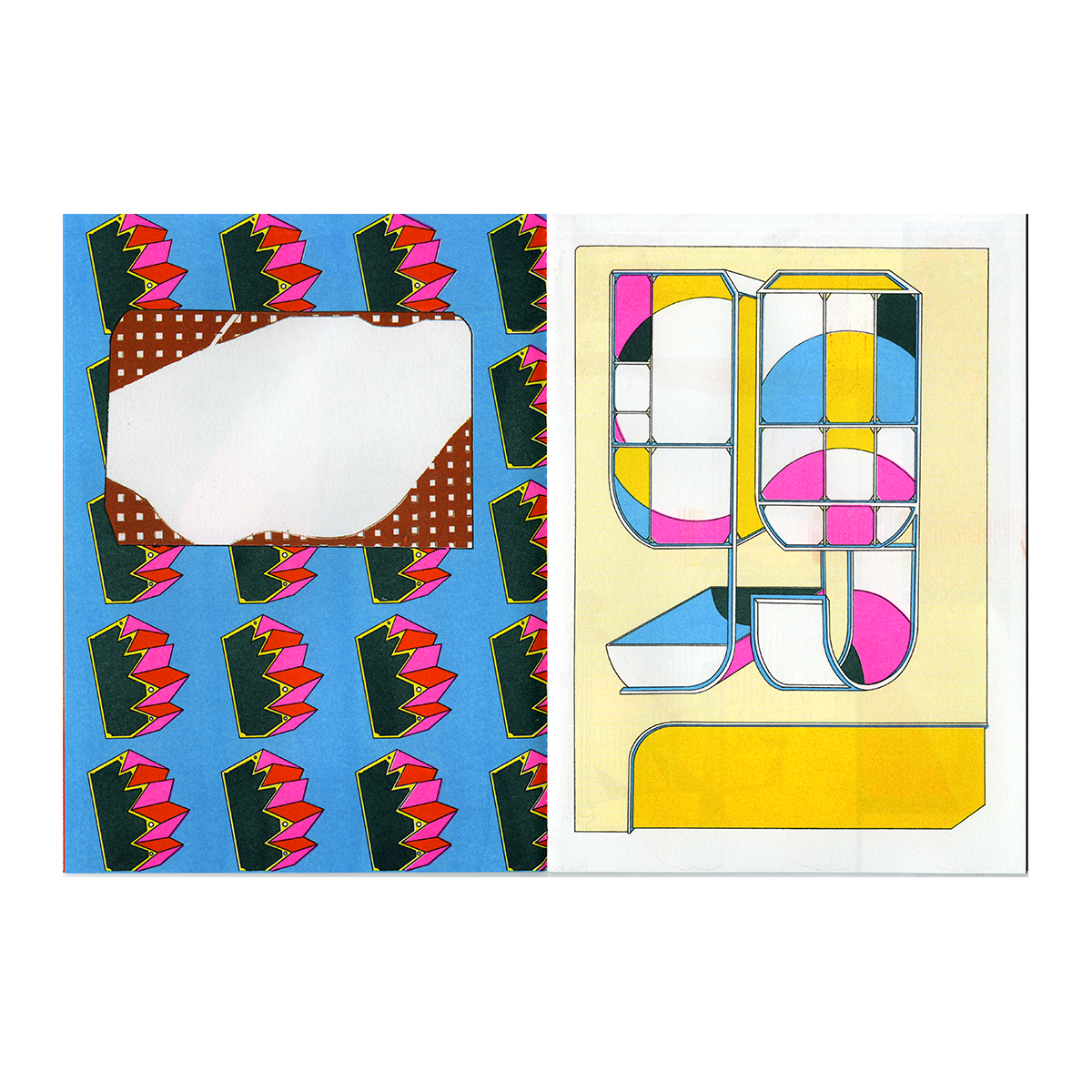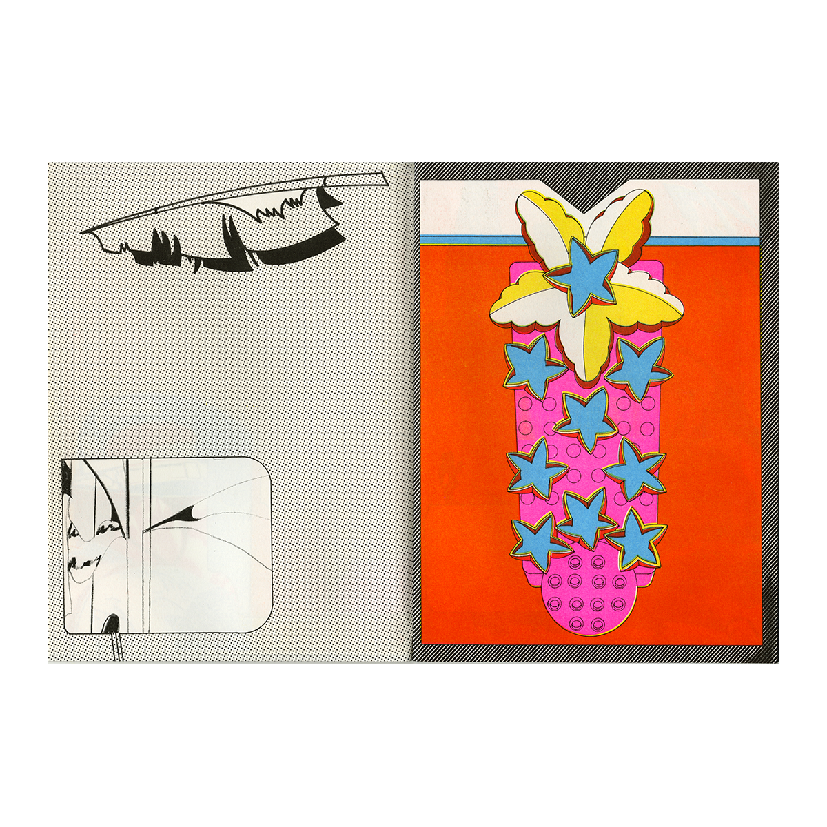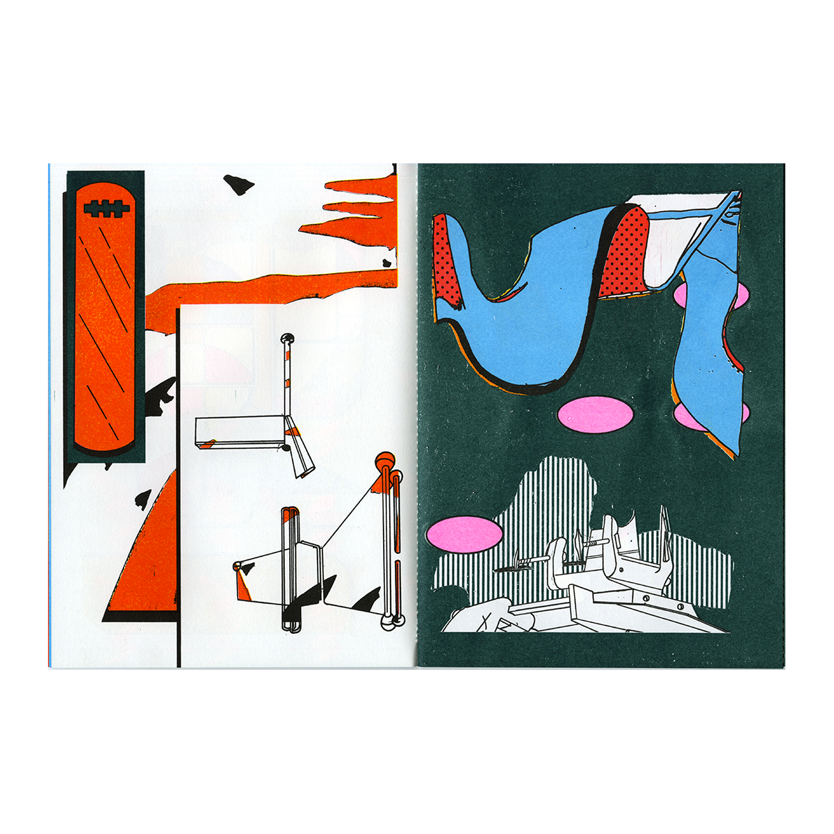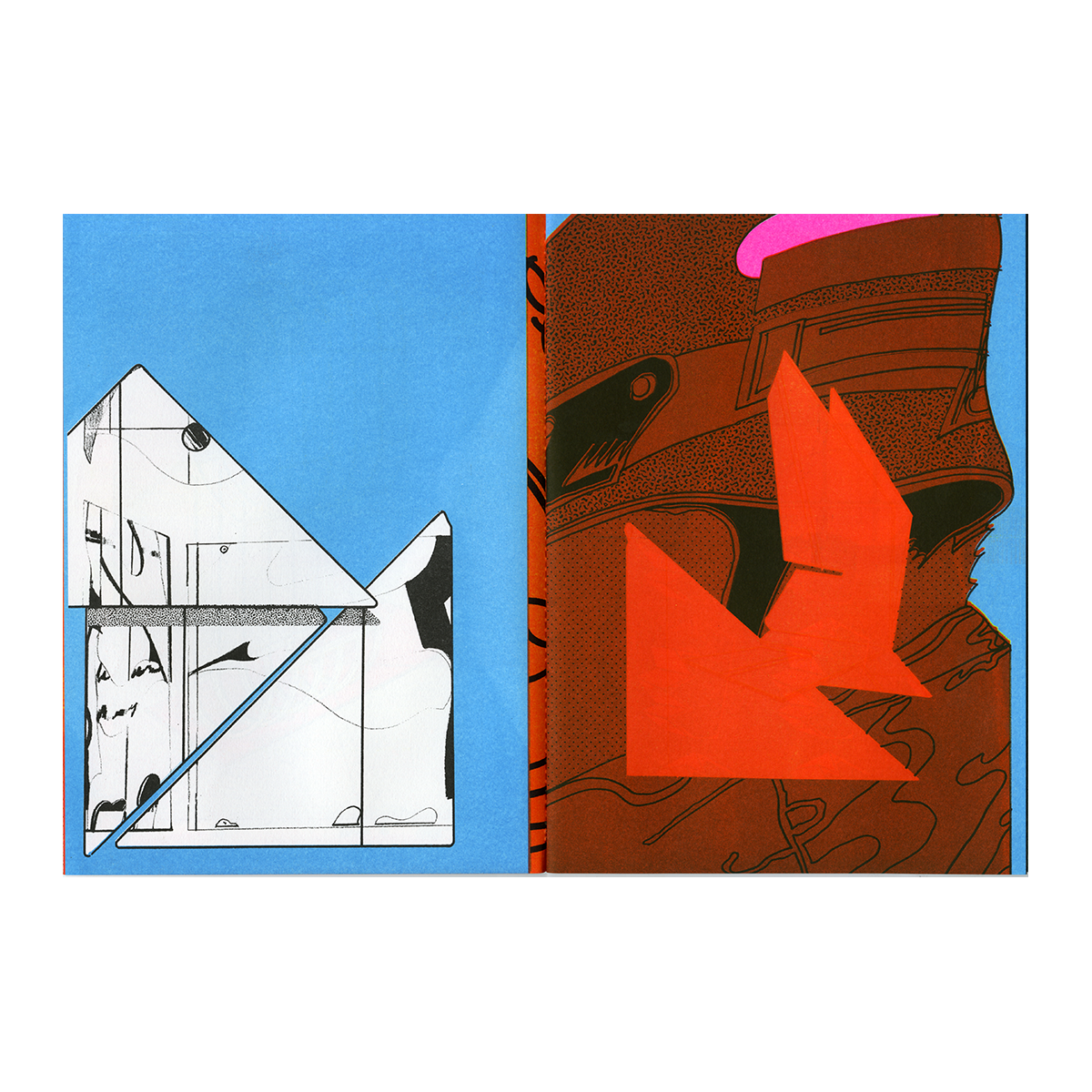 Snow Creek est le fruit de la collaboration entre les artistes Antoine Orand et Alex Besikian, un ping pong graphique dont l'abstraction frôle la figurativité. Imprimé en Risographie 6 couleurs et relié avec une couture Singer dans notre Atelier. Sticker découpe à la forme (placement libre) réalisé chez Sticker App.