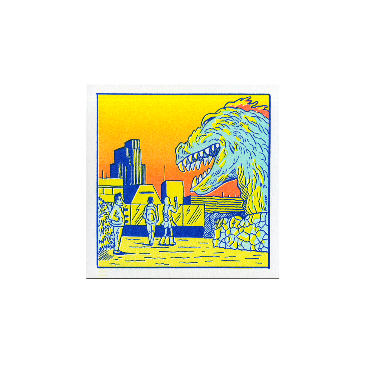 Illustration issue du recueil de dessins éponyme d'un voyage entre Tokyo et Naoshima de l'artiste Simon Bournel-Bosson. Imprimée en Risographie 4 couleurs.