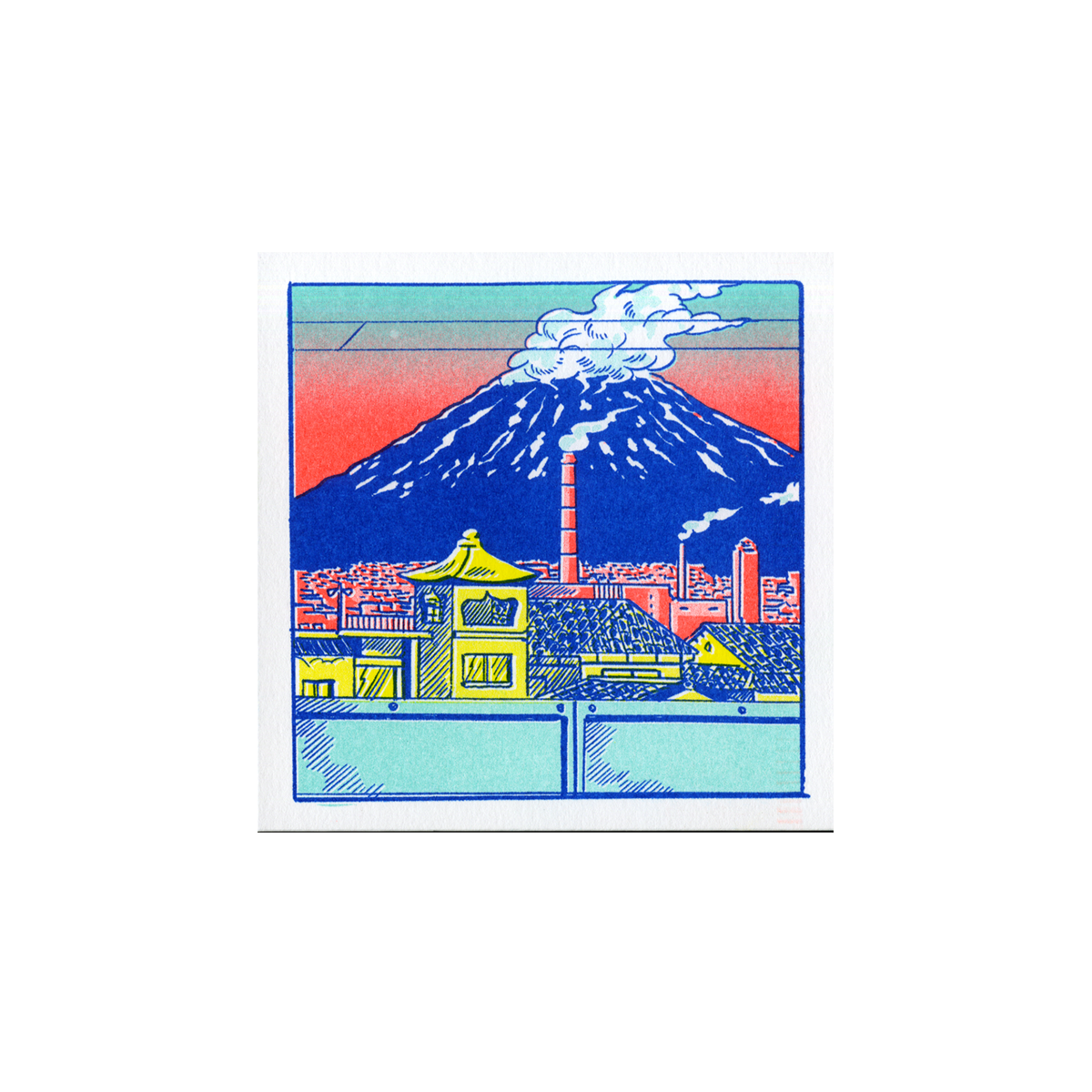 Illustration issue du recueil de dessins éponyme d'un voyage entre Tokyo et Naoshima de l'artiste Simon Bournel-Bosson. Imprimée en Risographie 4 couleurs.