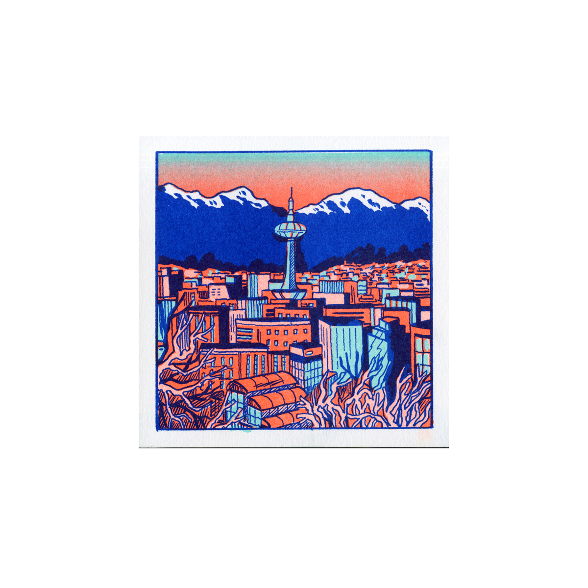 Illustration issue du recueil de dessins éponyme d'un voyage entre Tokyo et Naoshima de l'artiste Simon Bournel-Bosson. Imprimée en Risographie 4 couleurs.