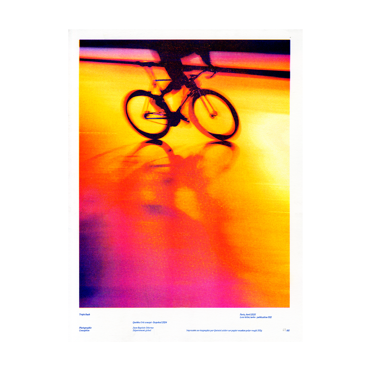 Tirage de Jean-Baptiste Delorme issu de l'exposition collective 'Love Letter Turbo' qui a eu lieu en avril 2025 à la librairie Quintal, pour accompagner le lancement du livre éponyme.