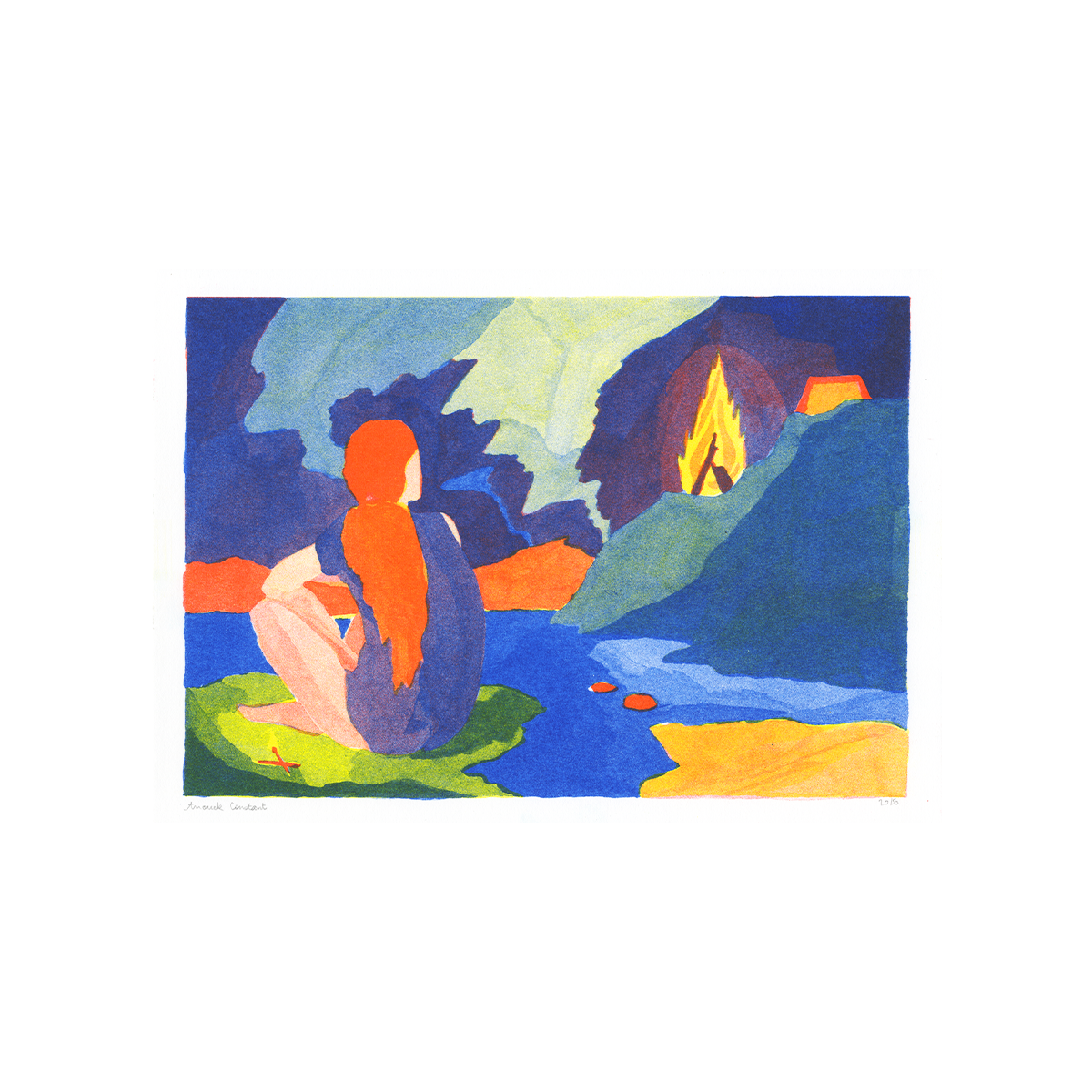 Dessin de l'artiste Anouck Constant imprimé en Risographie à l'occasion des 5 ans de l'atelier Quintal. Série limitée de 50 exemplaires numérotés et signés