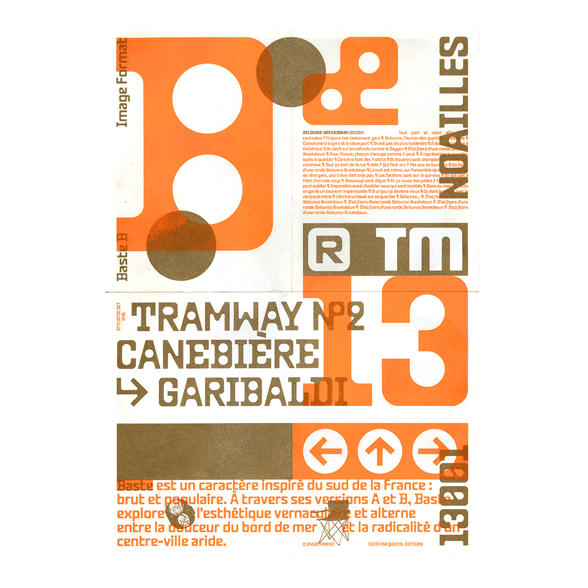 Spécimen typographique de Image Format, mise en page de leur caractère 'Baste A et B' créé en 2023. Disponible chez Lift Type