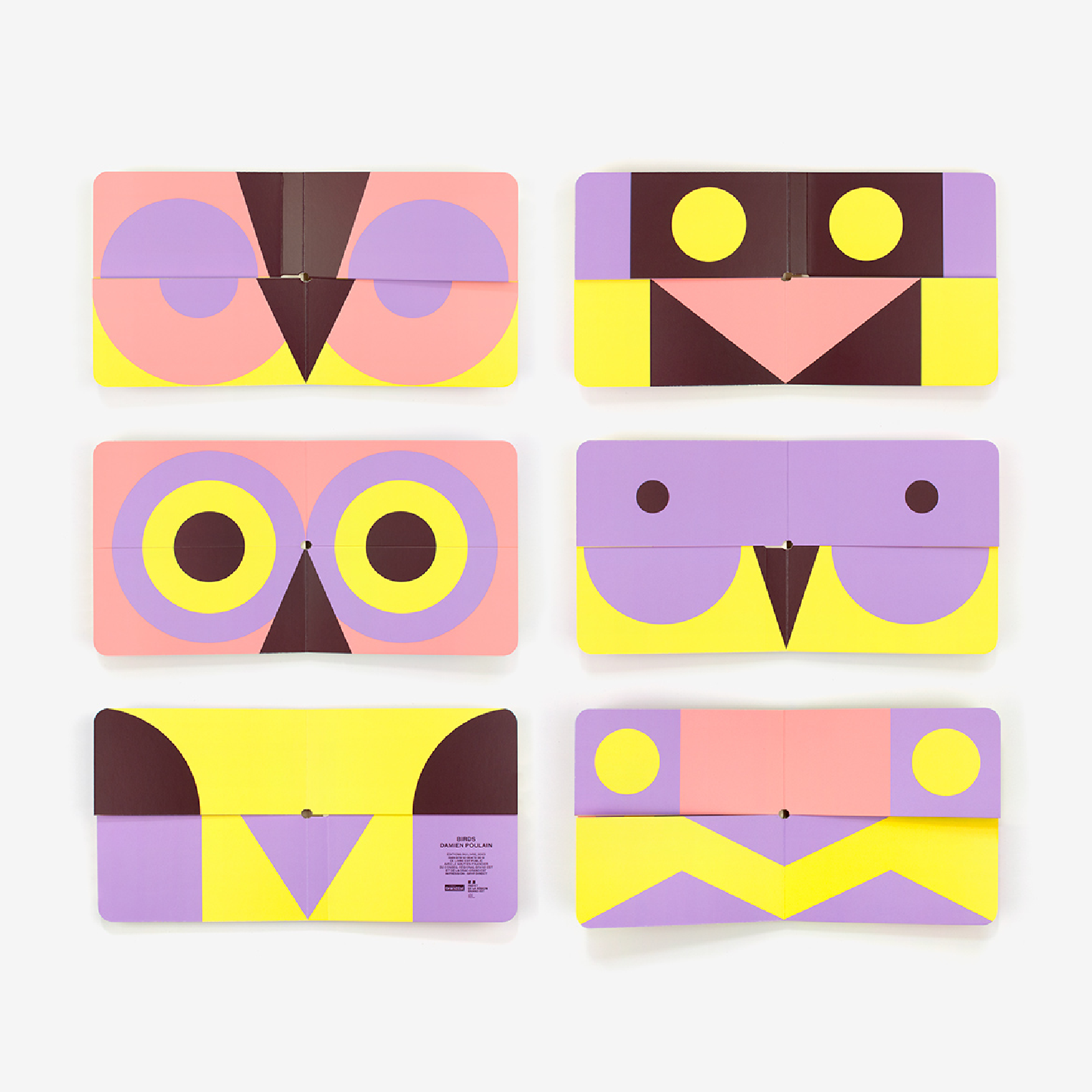 Birds est un livre pêle-mêle qui permet de créer 50 oiseaux étonnants. Utilisant un langage visuel universel, Damien Poulain imagine une série d’oiseaux totémiques, géométriques et colorés. Tournez les pages pour composer vos propres figures d’oiseaux, guidé par le plaisir du mouvement et des couleurs.
