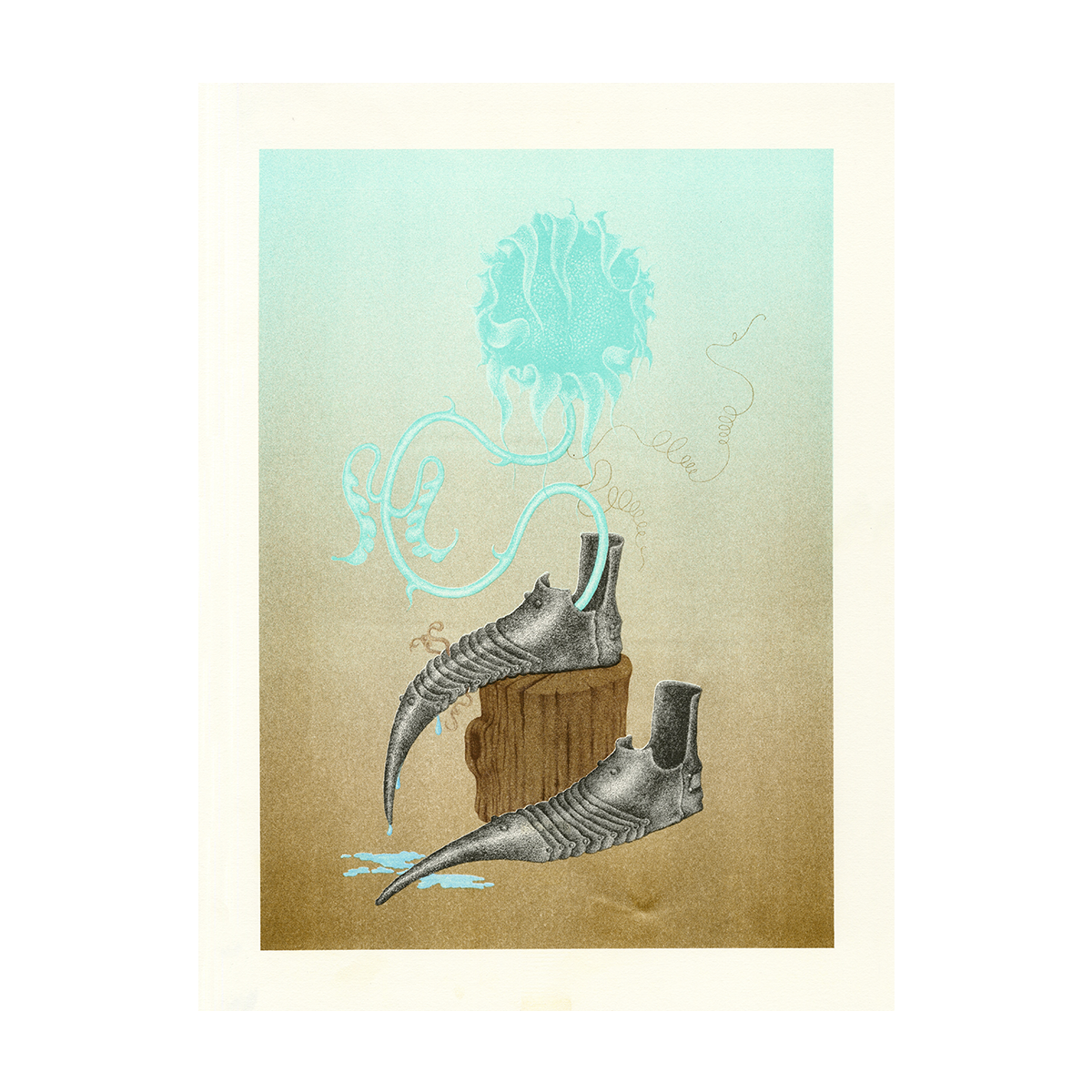 Dessin de l'artiste Pia-Mélissa Laroche imprimé en Risographie à l'occasion des 5 ans de l'atelier. Série limitée de 30 exemplaires numérotés et signés par l'artiste.