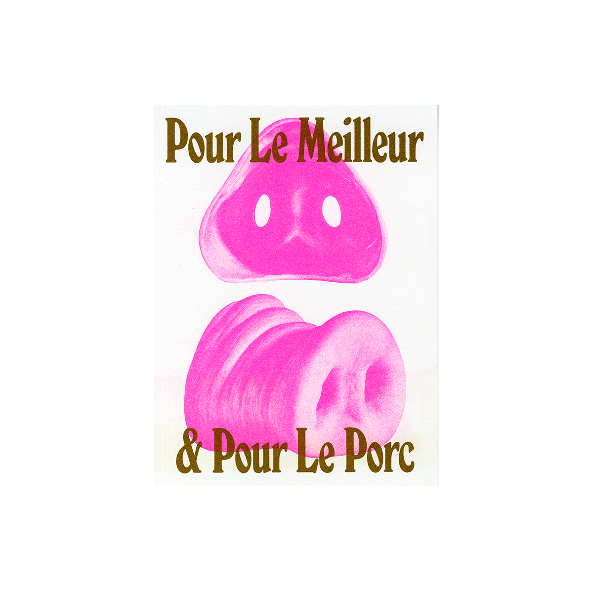 Tirage en risographie tiré du livre 'Pig Big' auto édité par Thomas Weil en hommage à son père, collectionneur de cochons. L'ouvrage, truffé de photographies et de textes, s'amuse à décortiquer l'étrange obsession de la figure paternelle pour cet animal grassouillet à la sale réputation.