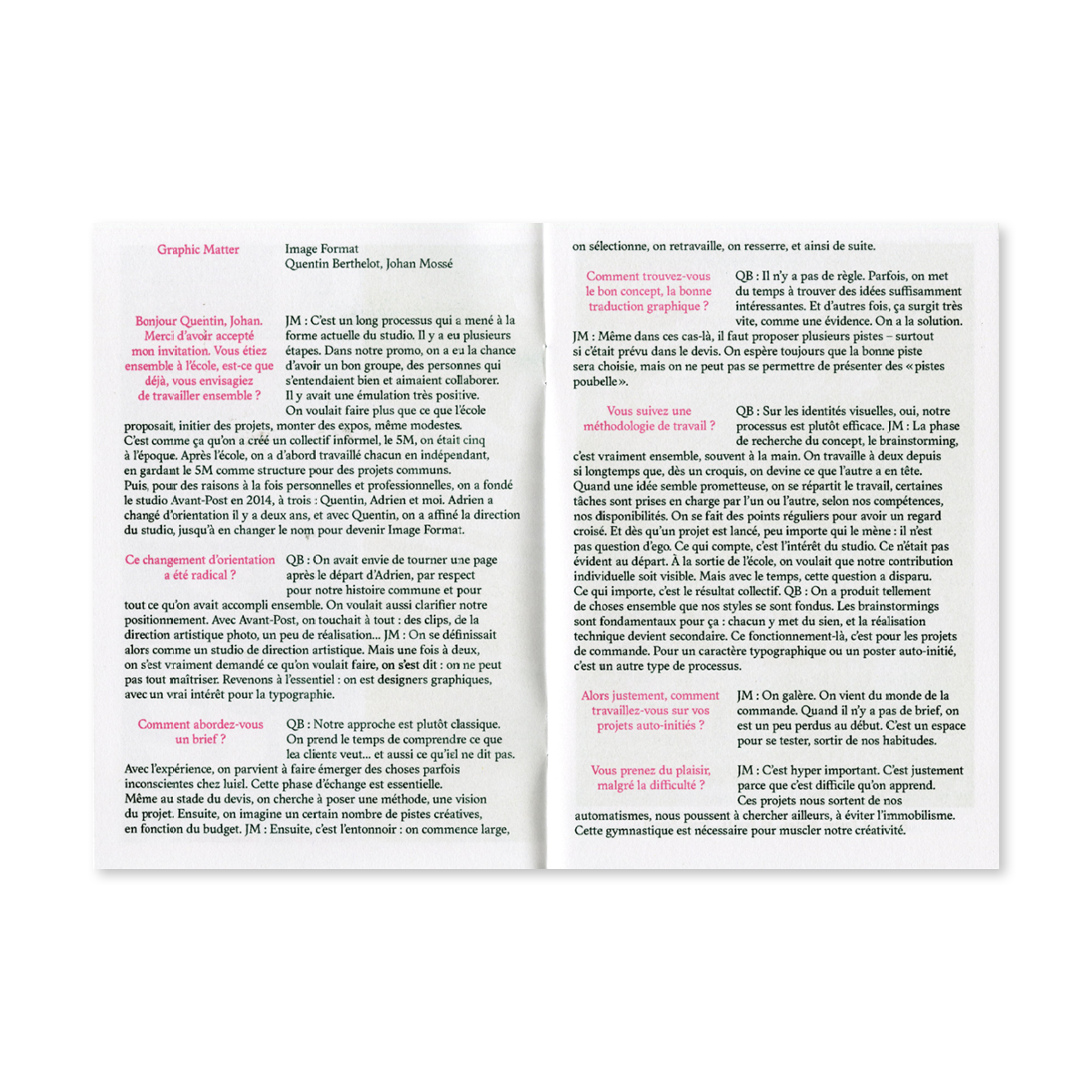 Graphic Matter is a podcast dedicated to the French contemporary graphic design scene. From the start, Graphic Matter wanted to offer a print format: an editorial object to leaf through, to give as a gift and to collect in one's library;
