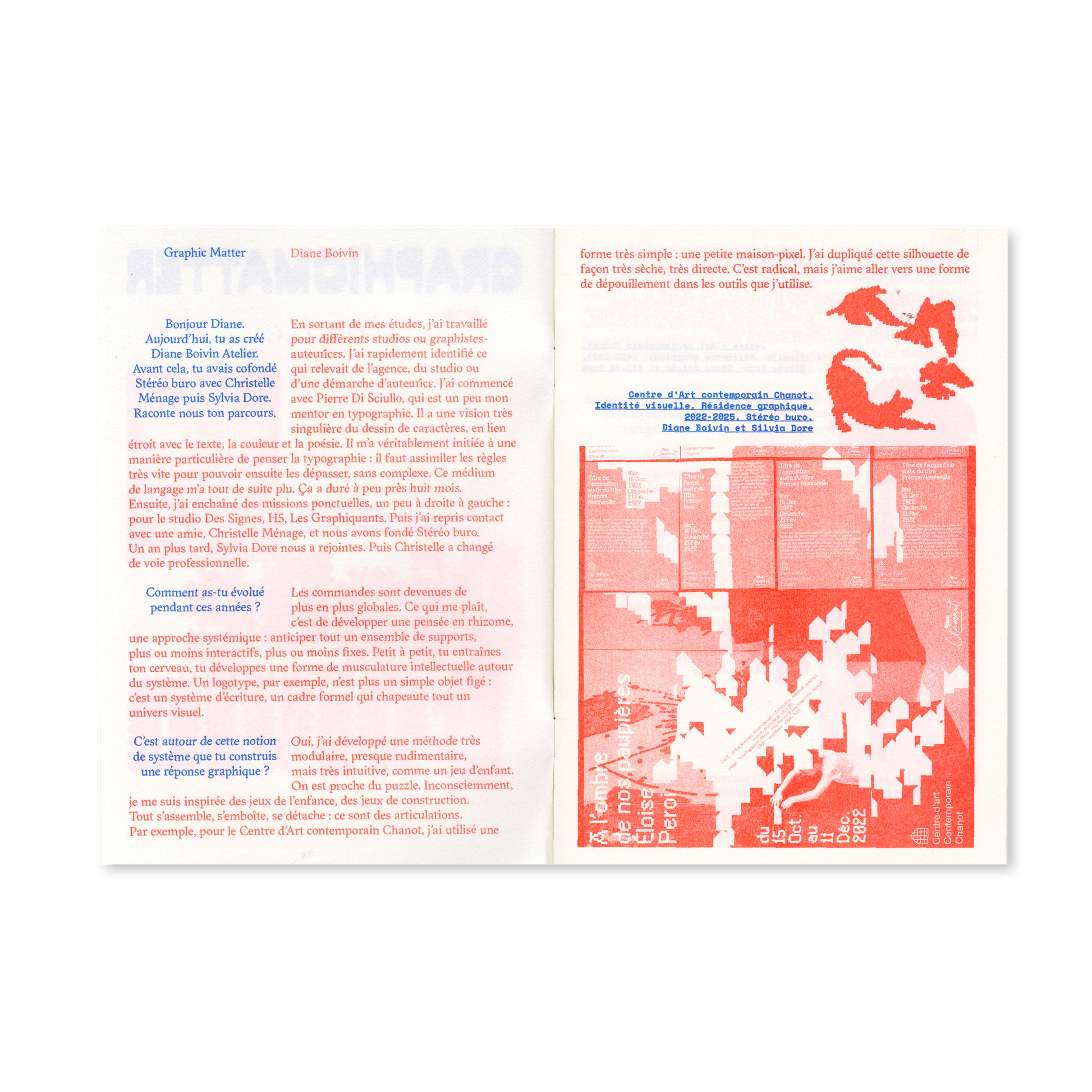 Graphic Matter is a podcast dedicated to the French contemporary graphic design scene. From the start, Graphic Matter wanted to offer a print format: an editorial object to leaf through, to give as a gift and to collect in one's library;