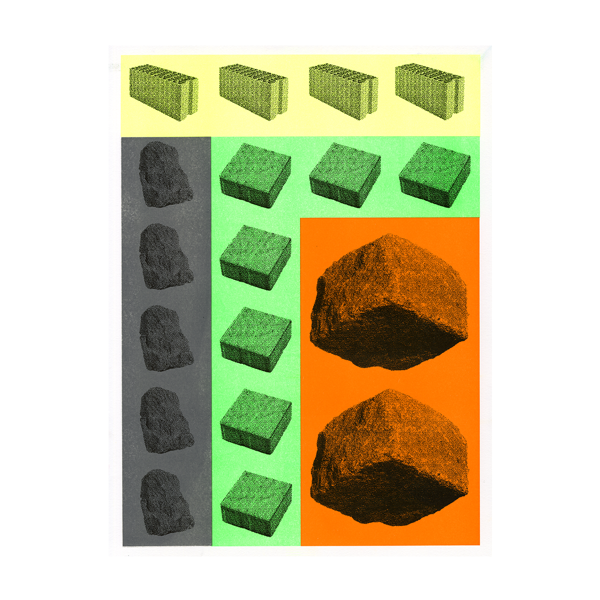 Visuel du duo de graphistes Maison Solide imprimé en Risographie à l'occasion des 5 ans de l'atelier. Série limitée de 30 exemplaires numérotés et signés par l'artiste.