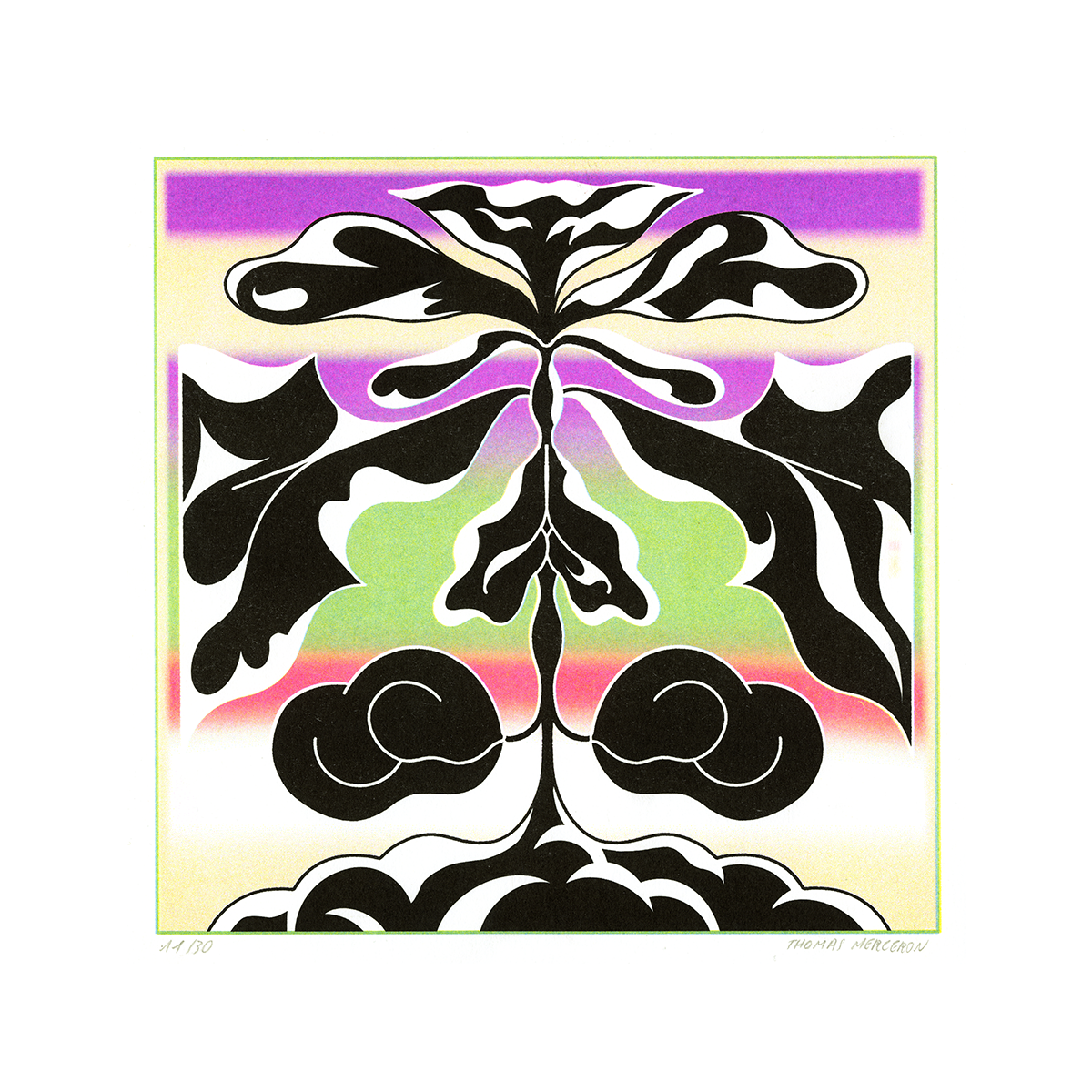 Dessin numérique de l'artiste Parisien Thomas Merceron imprimé en Risographie. Série limitée de 30 exemplaires numérotés et signés par l'artiste.