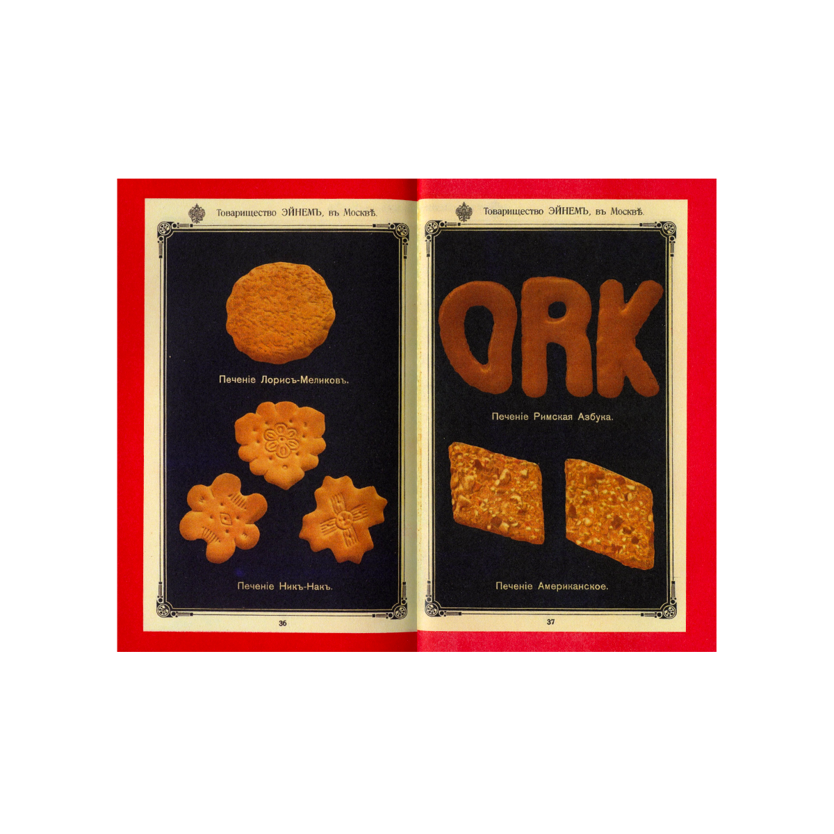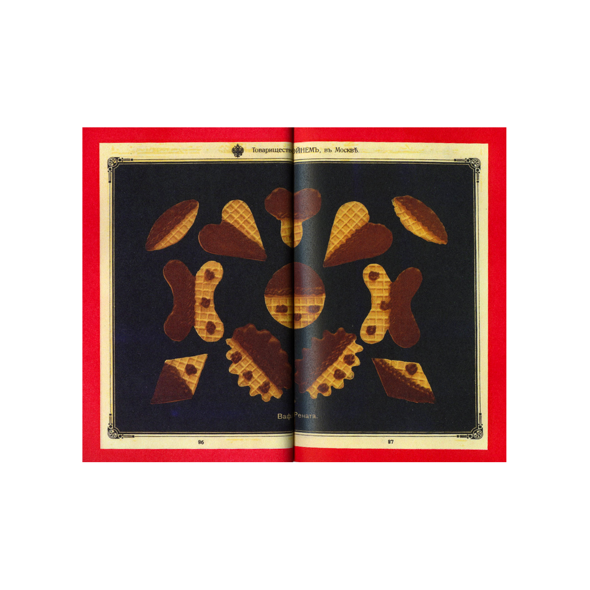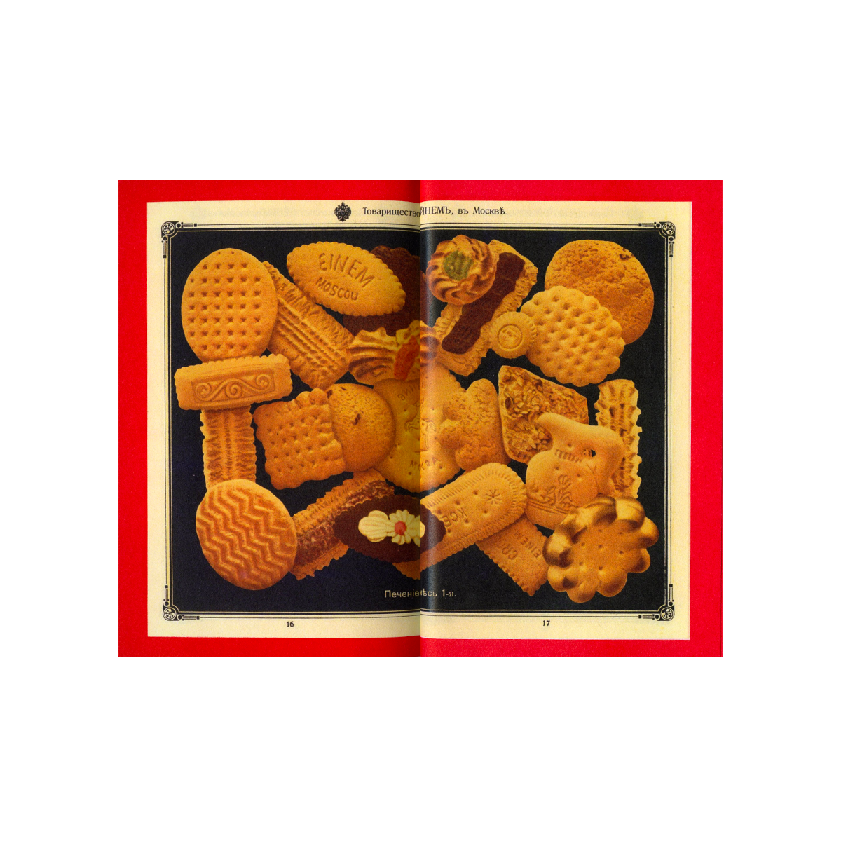 Similé #1 Sweet treasures from the Einem factory est une collection d'illustrations de biscuits, de gigerbreads et de gaufrettes tirées du catalogue de Einem Company de 1896 à Moscou.
