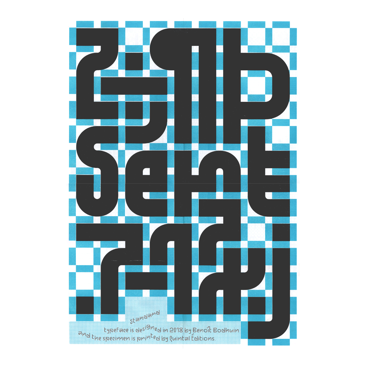 Spécimen Typographique de Benoît Bodhuin, mise en page de son caractère 'Standard' créé en 2019.