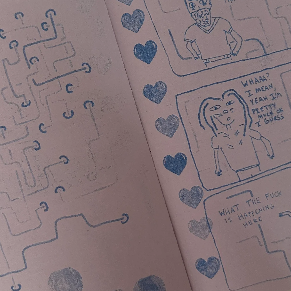 On y trouve une grande carte de la montagne, une créature vermiforme mystique, et des anecdotes sur mon enfance à la plage, notamment quand je portais un t-shirt trop grand dans l'eau."