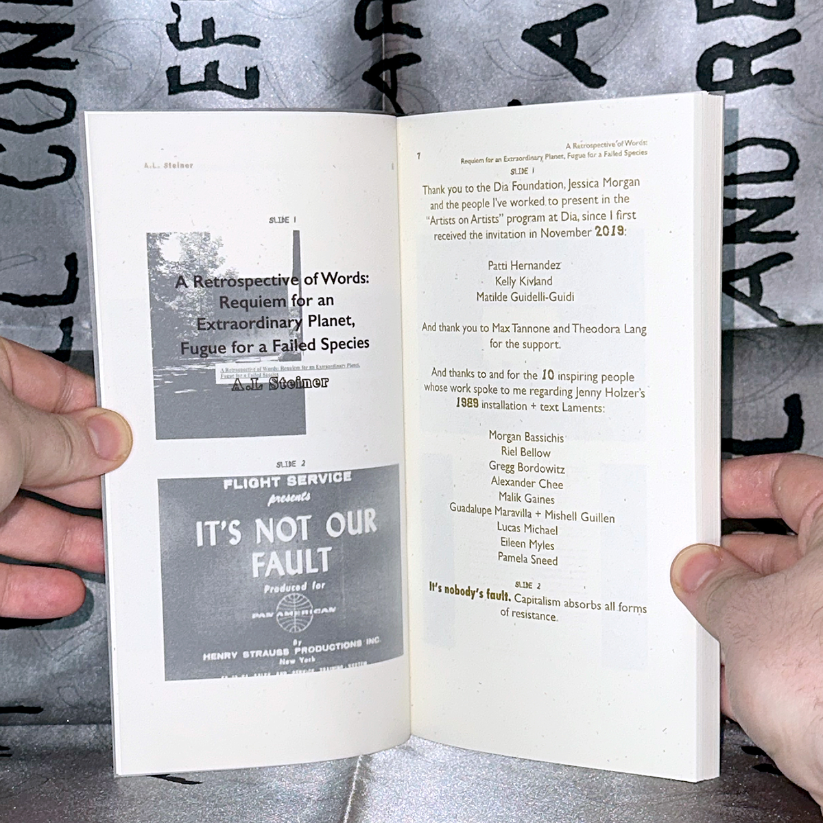Textdemic est édité par A.L. Steiner et GenderFail. Ce livre s'inspire de la série de conférences Artists on Artists, lorsque la Dia Art Foundation a invité Steiner à organiser un programme public basé sur une œuvre choisie par l'artiste.