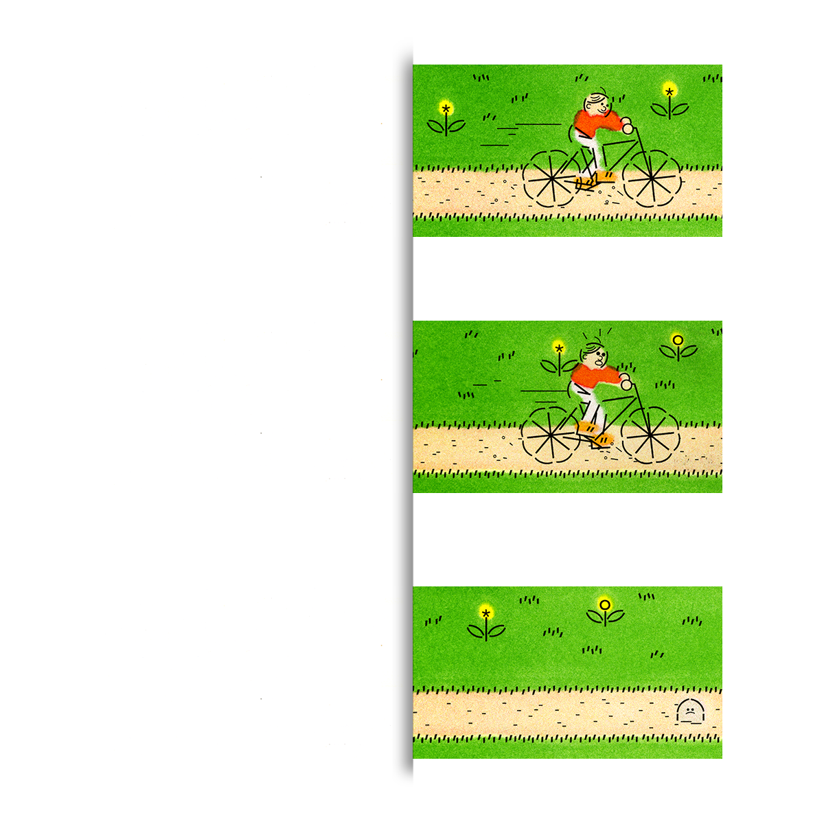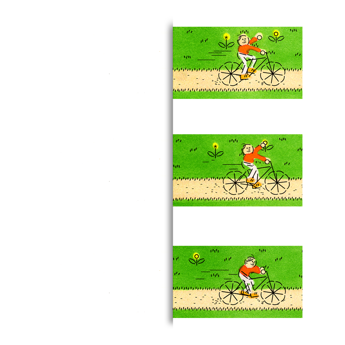 "Toute histoire a une chute" est un flipbook de Matthieu Pajot réalisé pour accompagner l'exposition collective 'Love Letter Turbo' qui a eu lieu en avril 2025 à la librairie Quintal. Découvrez ce qu'il arrive aux cyclistes un peu trop enthousiastes...