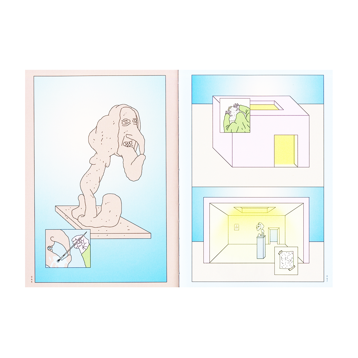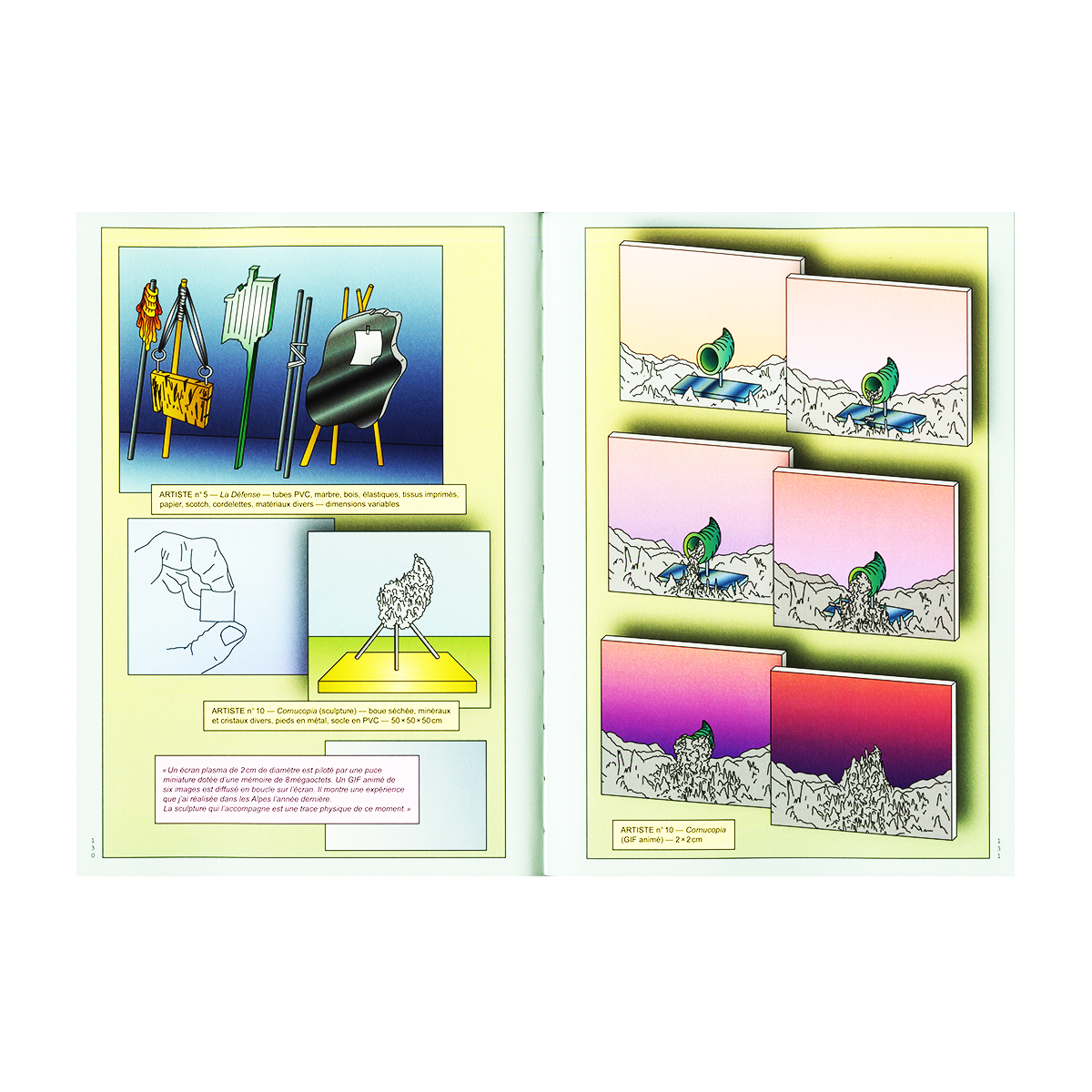 En 17 récits de longueur variable, au gré de mises en scènes qui sont autant de propositions d’installations, de sculptures, d’images et de concepts, Sammy Stein offre de déambuler dans des musées imaginaires (« Le musée de la Tortue », « Archives du musée de cristal »), de visiter des collections rêvées (« Visages du temps », « Multimonde »), rend hommage à un artiste obscur dont l’œuvre a presque entièrement disparu (« Salut Marcel »), convoque les souvenirs d’un lieu fictif et de ses artefacts (« Galerie 128 », « Retour vers le centre »), décrit une œuvre impossible (« Fireworks »), observe le processus de transformation d’une forme en une autre (« Moving sculpture », « Camouflage », « Bye bye Dada »), et évoque même de fantastiques recettes de cuisine (« Le grand restaurant », épisodes 1 et 2).