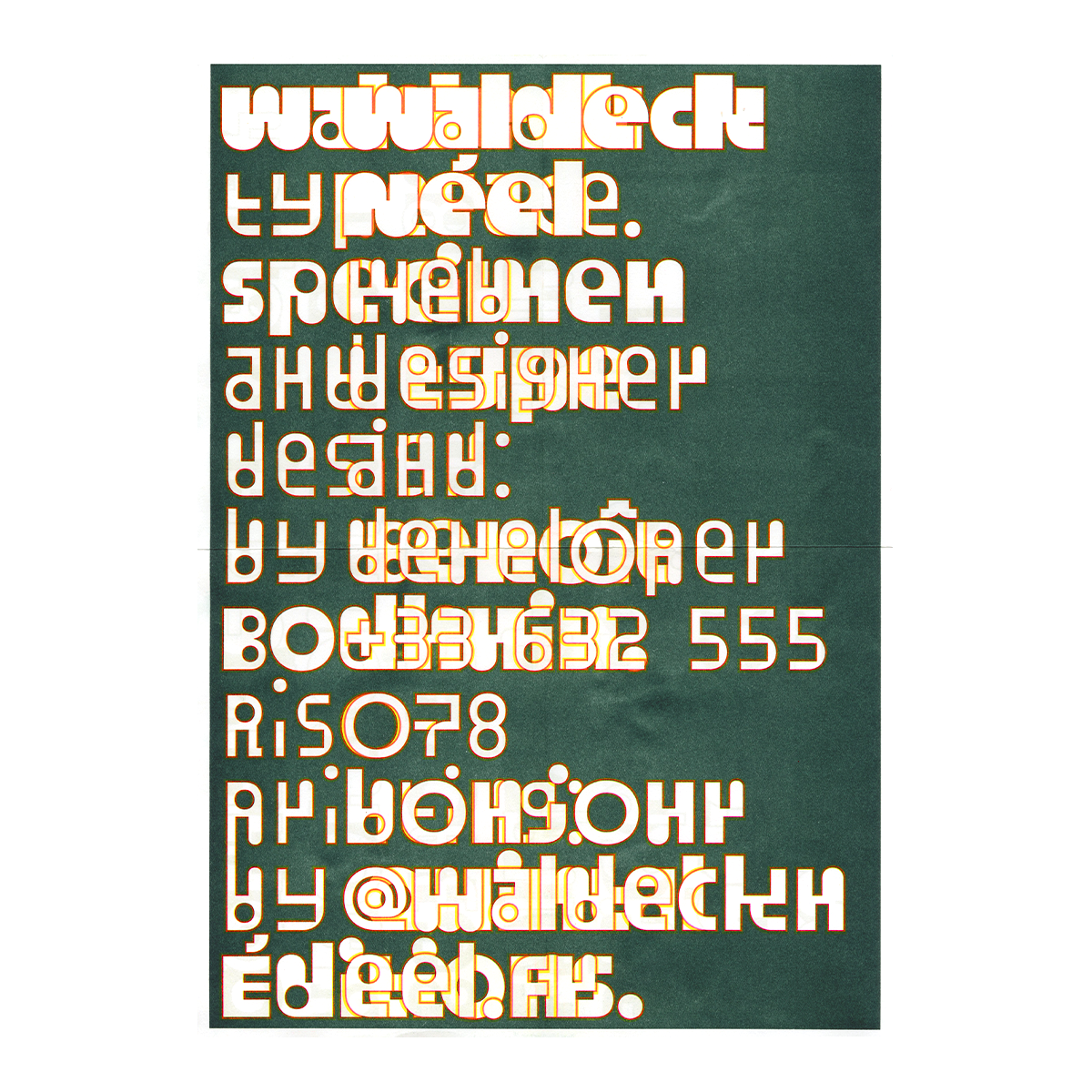 Spécimen Typographique de Benoît Bodhuin, mise en page de son caractère 'Waldeck' créé en 2025.